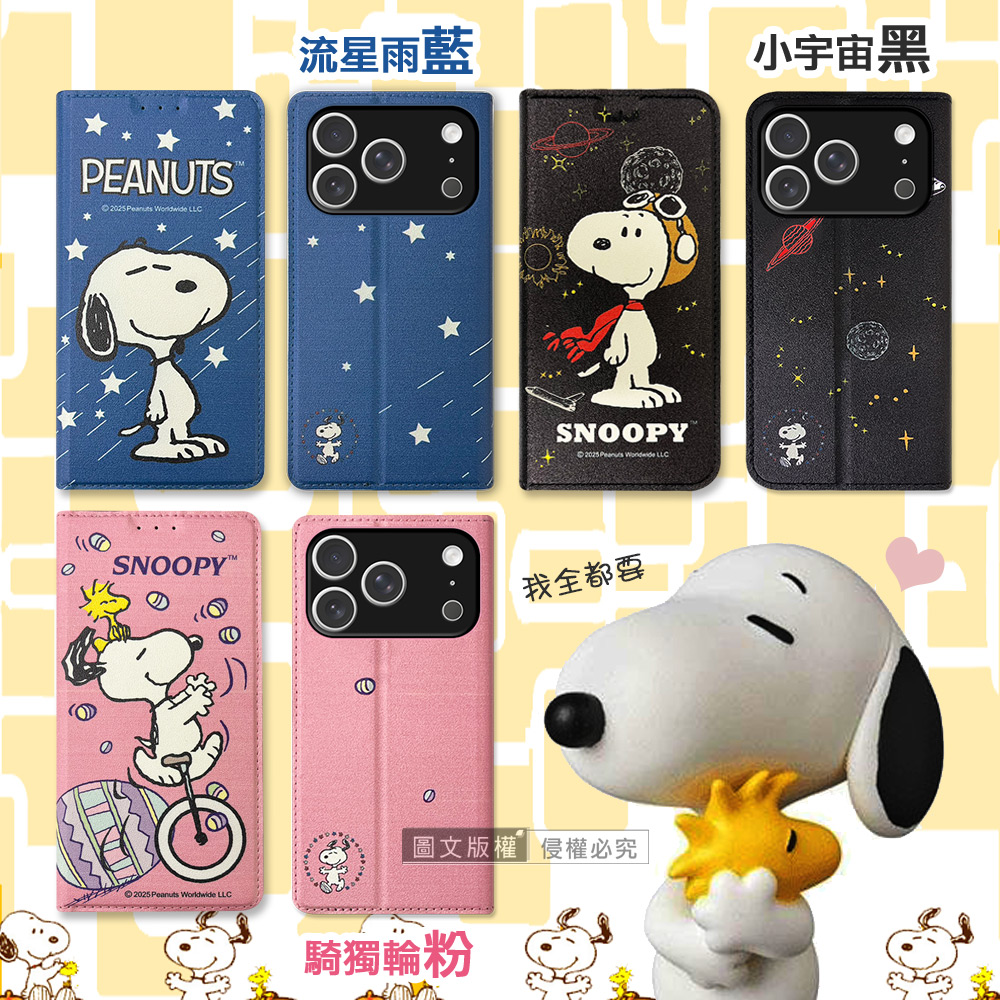史努比授權正版 iPhone 17 Pro 金沙灘彩繪磁力手機皮套(騎獨輪粉)