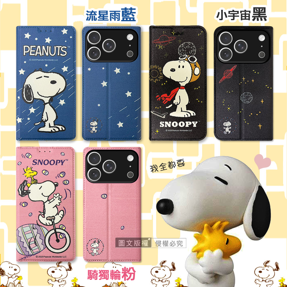 史努比授權正版 iPhone 17 Pro Max 金沙灘彩繪磁力手機皮套(騎獨輪粉)