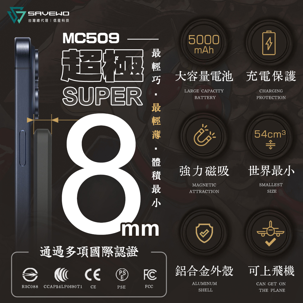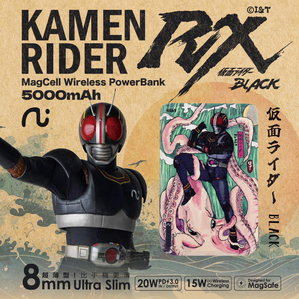 SAVEWO X 別天神 假面騎士 MagCell浮世繪系列 超薄磁吸式無線行動電源5000mAh-假面騎士BLACK