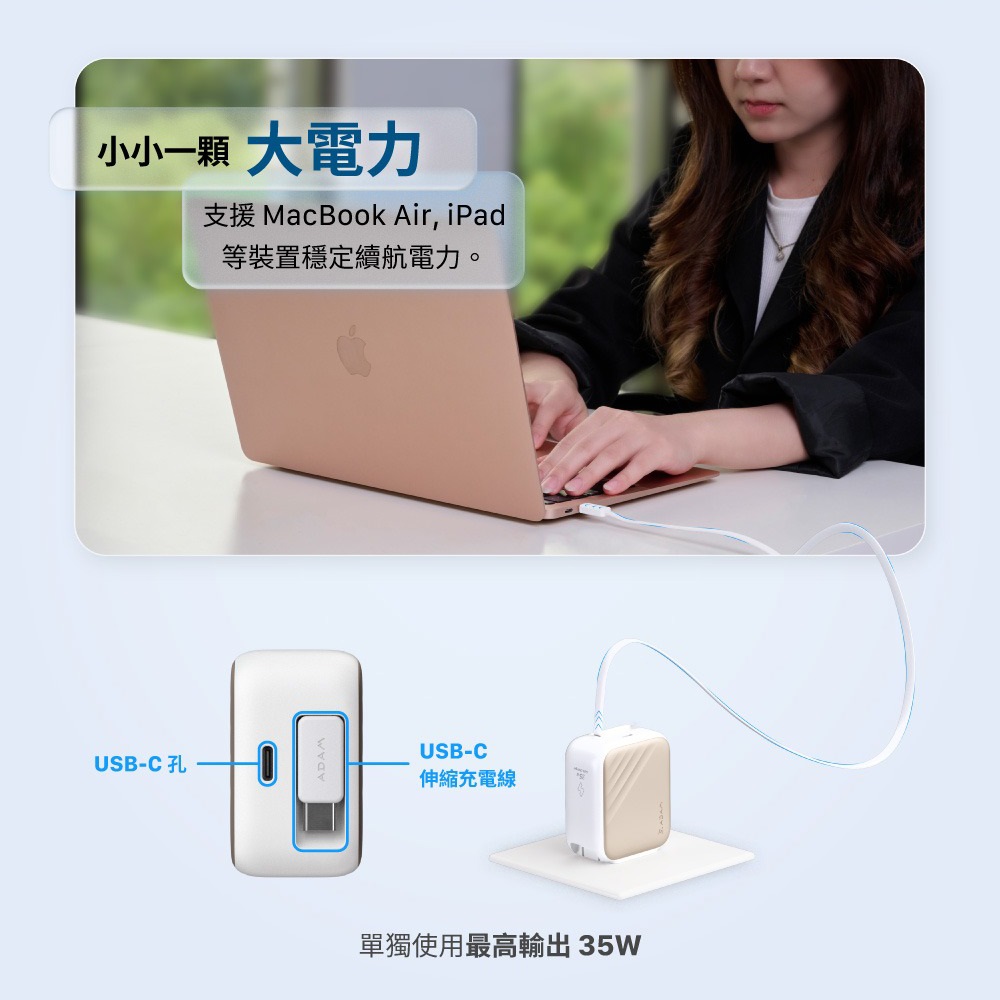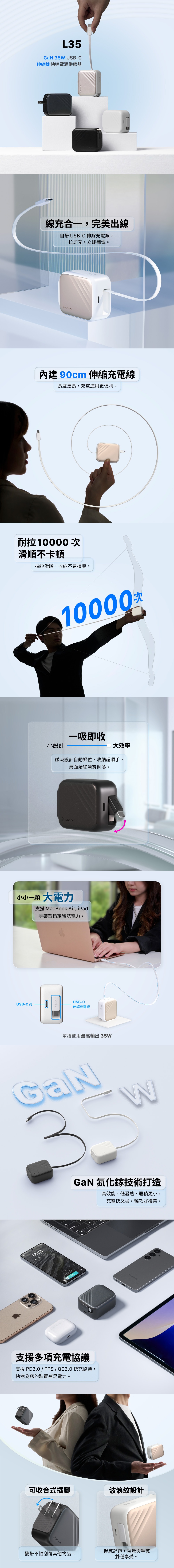 【亞果元素】L35 GaN 35W USB-C伸縮線快速充電器_鈦金