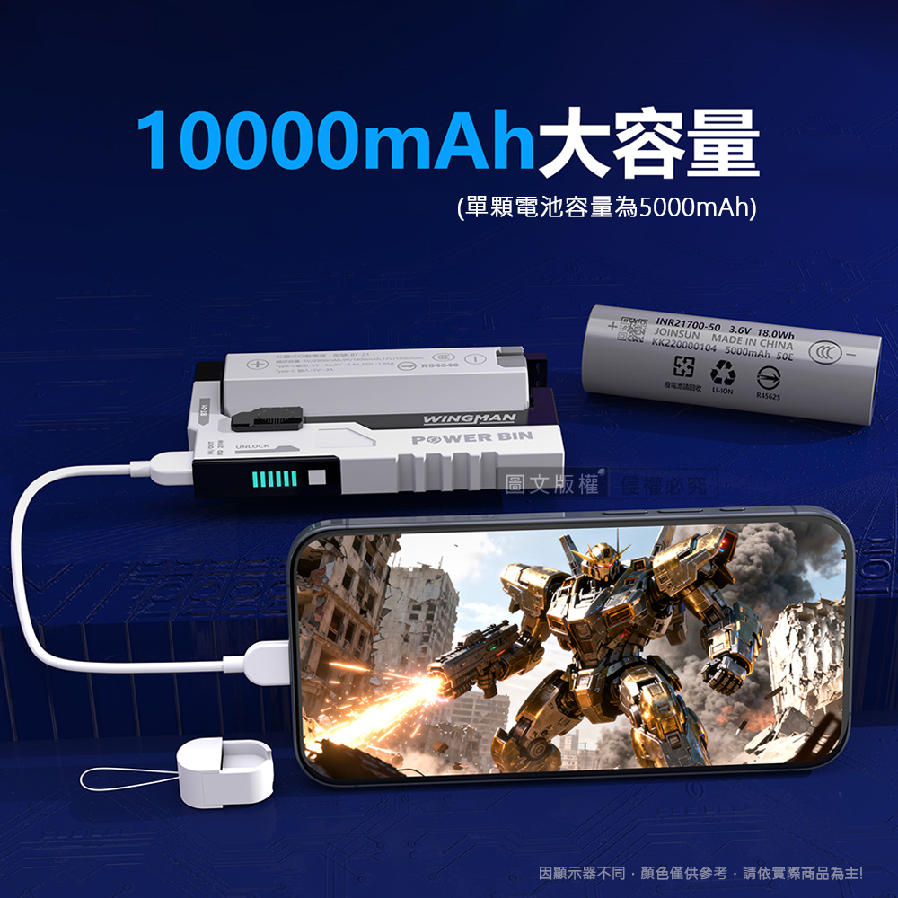 VOORCA 輕型機甲 PD20W分離式行動電源 10000mAh可拆式電池 BSMI安全認證(灰色)