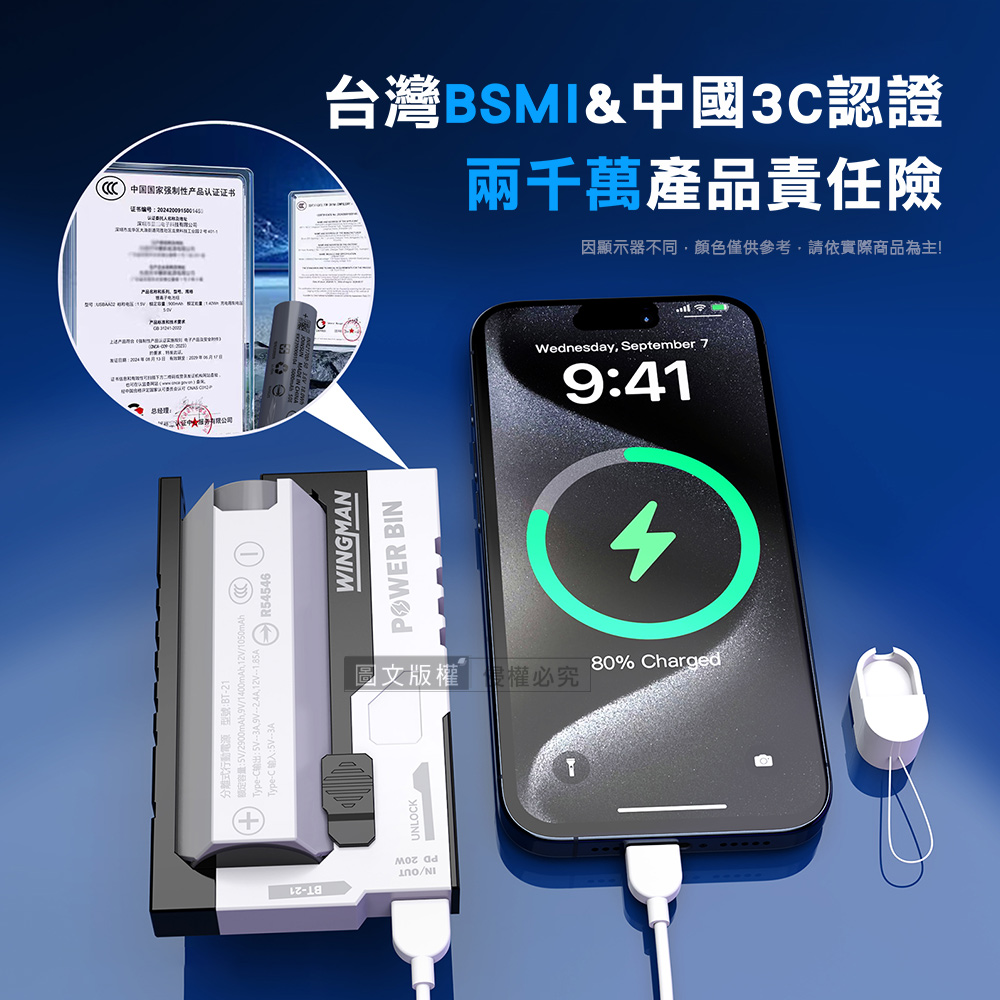 PD雙向快速充電,通過大陸CCC認證及台灣BSMI認證