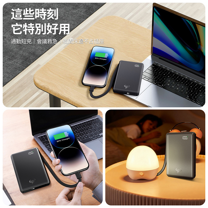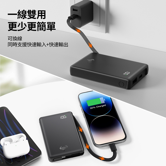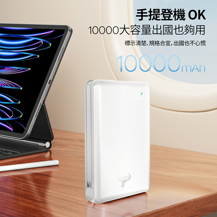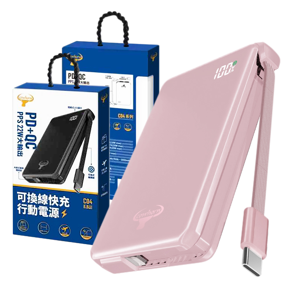 Cowhorn 牛角 C04 10000mAh自帶線可拆線數顯22W快充行動電源-粉