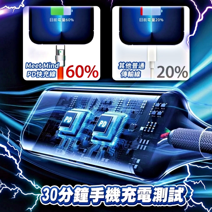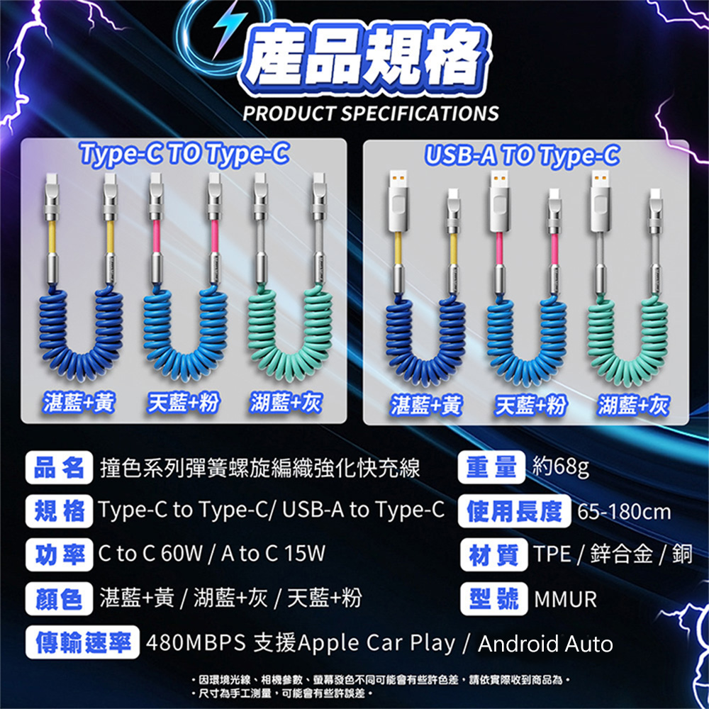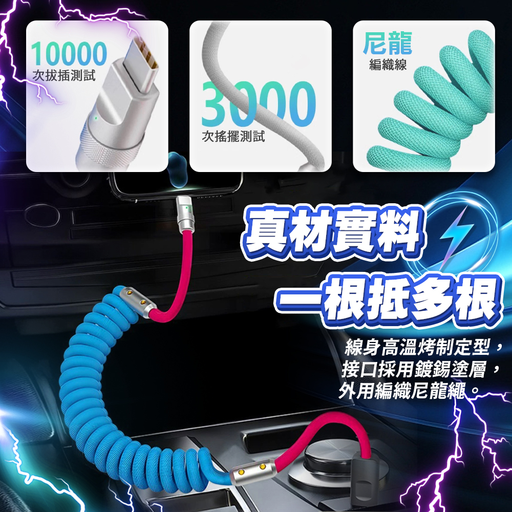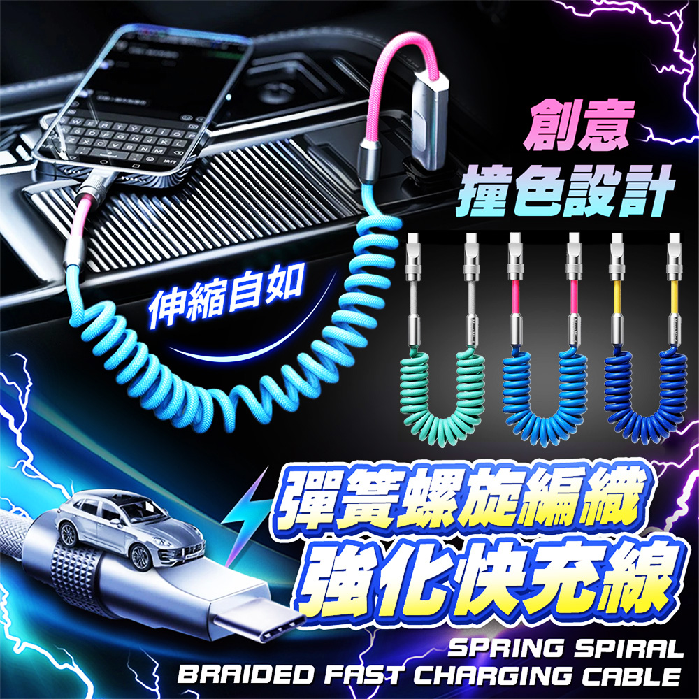 Meet Mind 撞色系列-彈簧螺旋編織強化快充線 湛藍+黃Type-C to Type-C