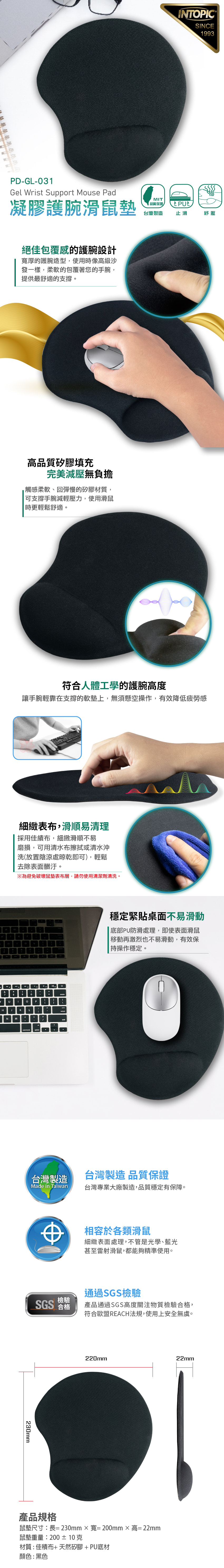 INTOPIC 凝膠護腕滑鼠墊-台灣製(PD-GL-031)