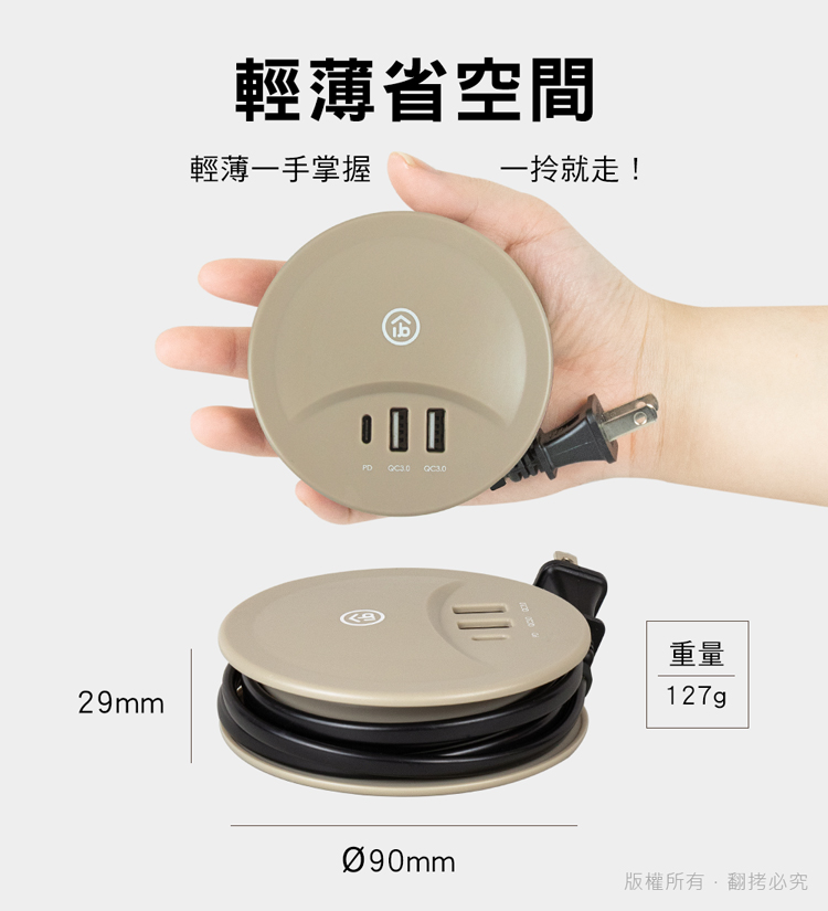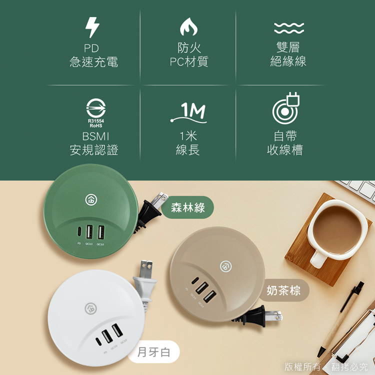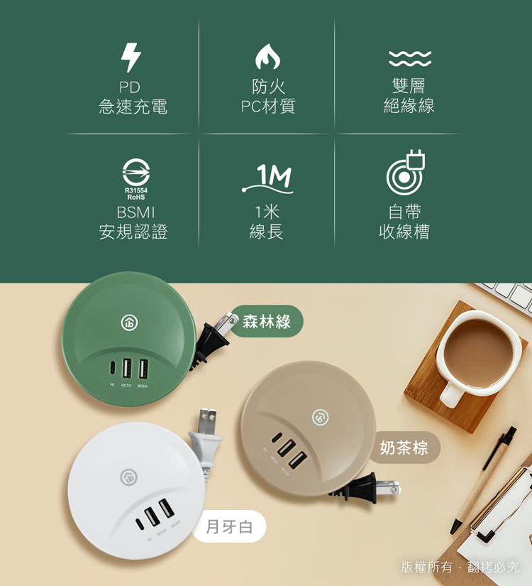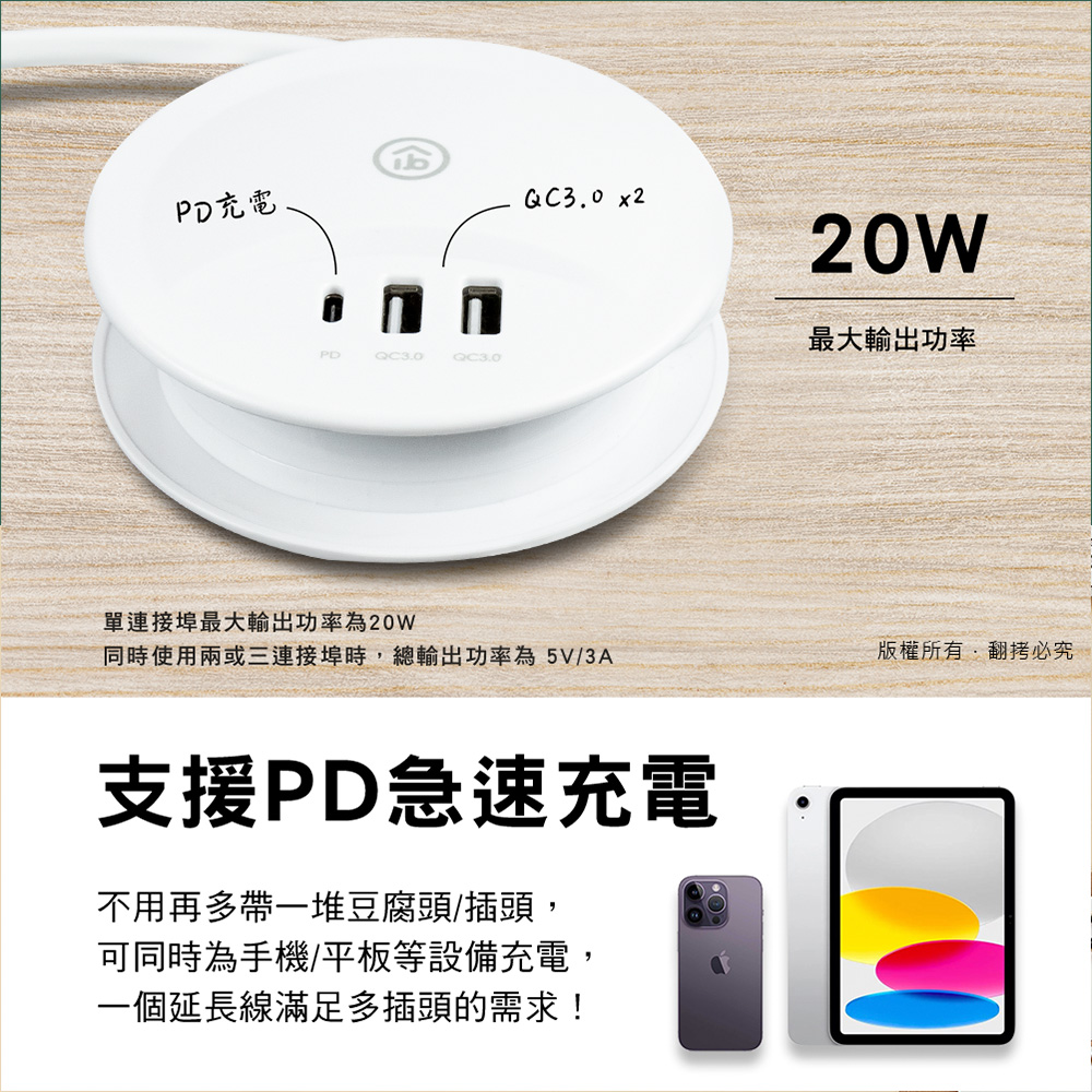 整合了現代人需要的多設備充電需求,1孔PD+兩孔QC3.0設計,