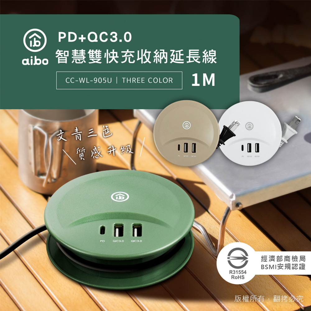 市面上的延長線都醜醜的?【aibo 智慧雙快充 USB延長線(1M)】