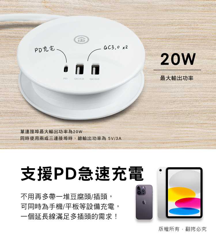 不再帶一堆充電器,支援PD急速充電,最高3台裝置一次充也不是問題!