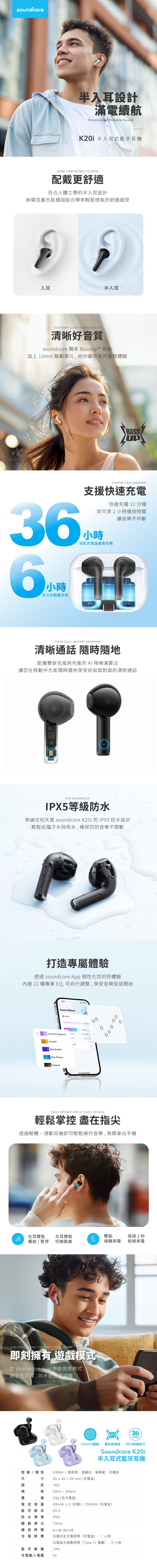 【Soundcore】K20i 半入耳式藍牙耳機_淡雅紫
