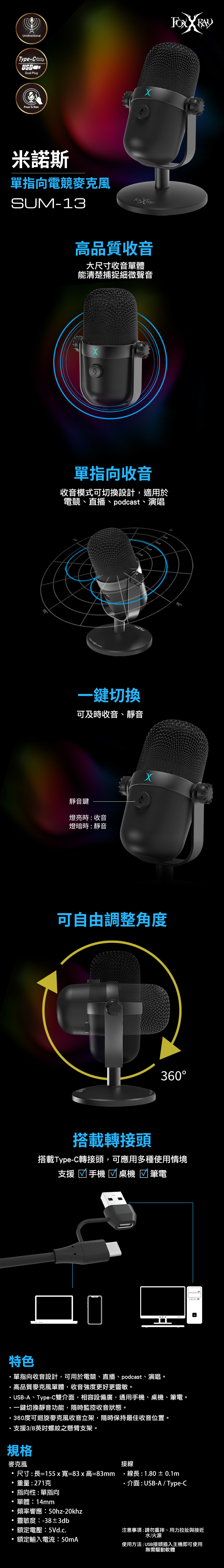 FOXXRAY 狐鐳 米諾斯單指向電競麥克風(FXR-SUM-13)