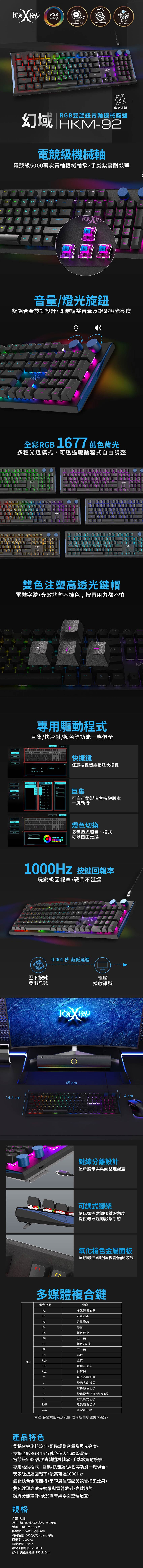 FOXXRAY 狐鐳 幻域RGB雙旋鈕青軸機械鍵盤(FXR-HKM-92 青軸)