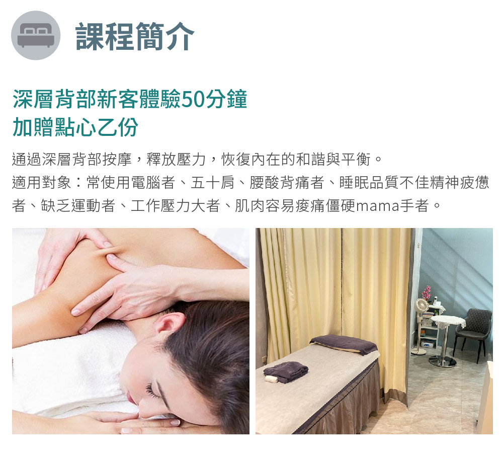 活動!新北中和【舒馨汗蒸SPA美學館】深層背部新客體驗50分鐘贈點心乙份(M0)