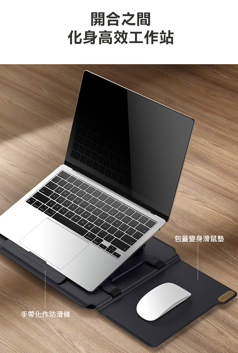 .面蓋即滑鼠墊:耐磨防刮環保素皮材質,滑鼠滑動流暢,無需額外攜帶滑鼠墊,節省空間