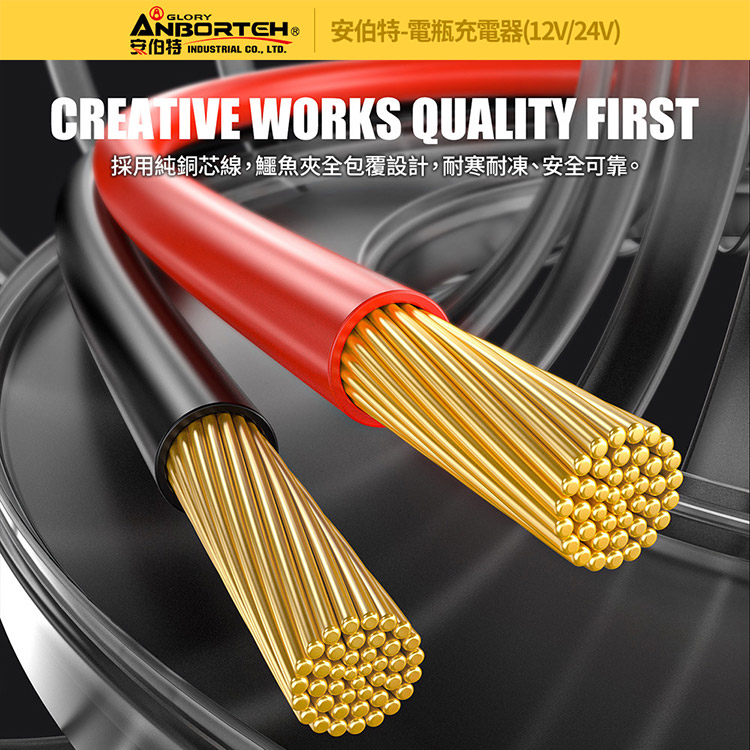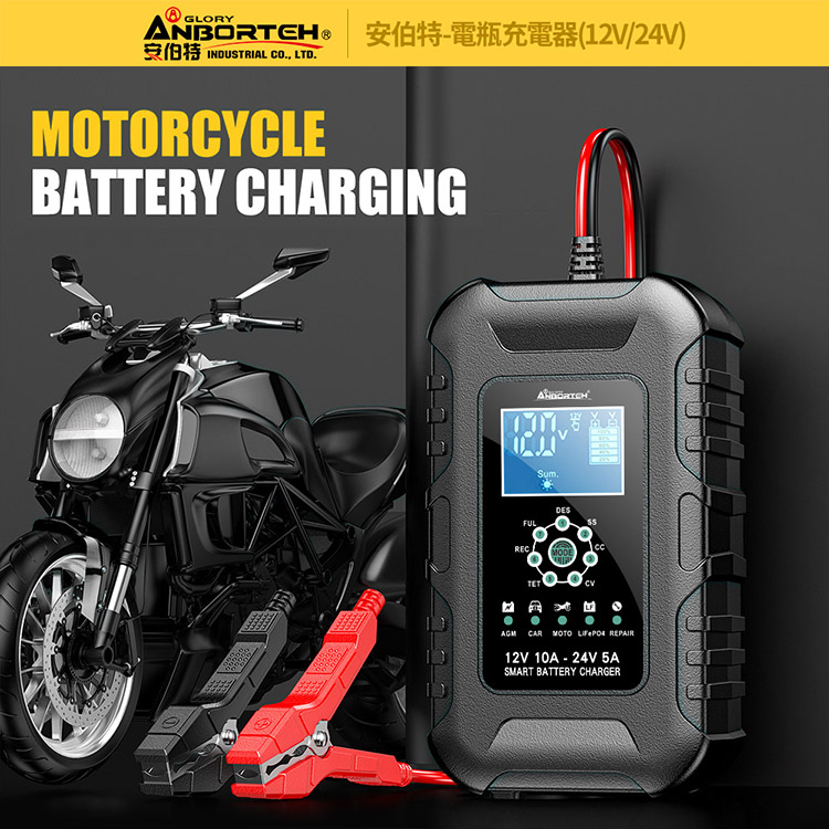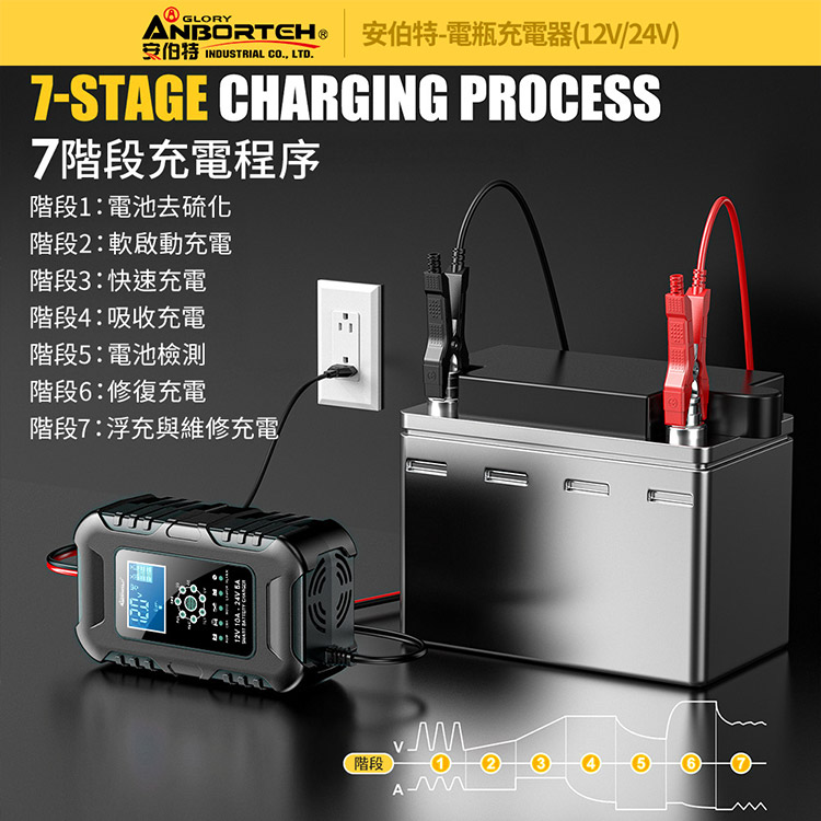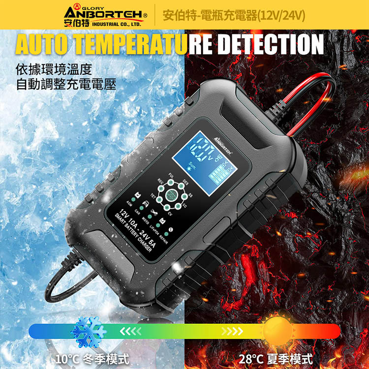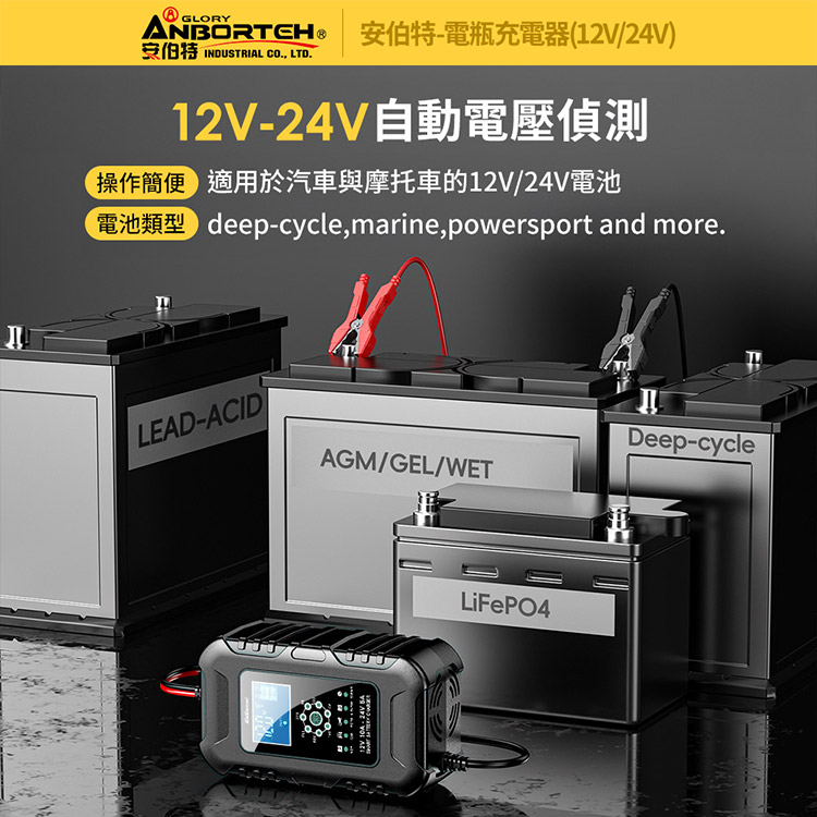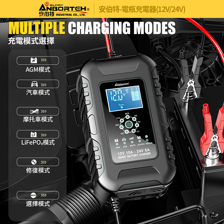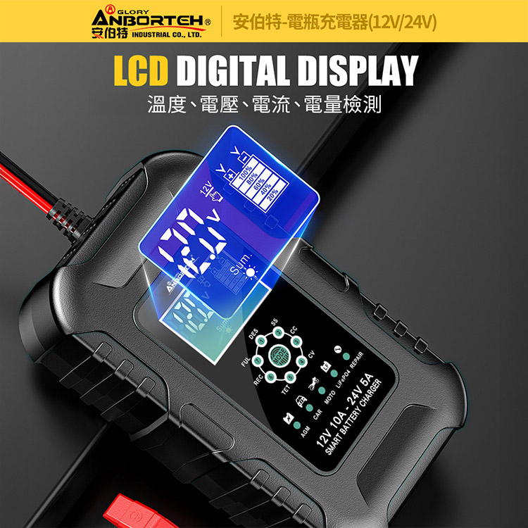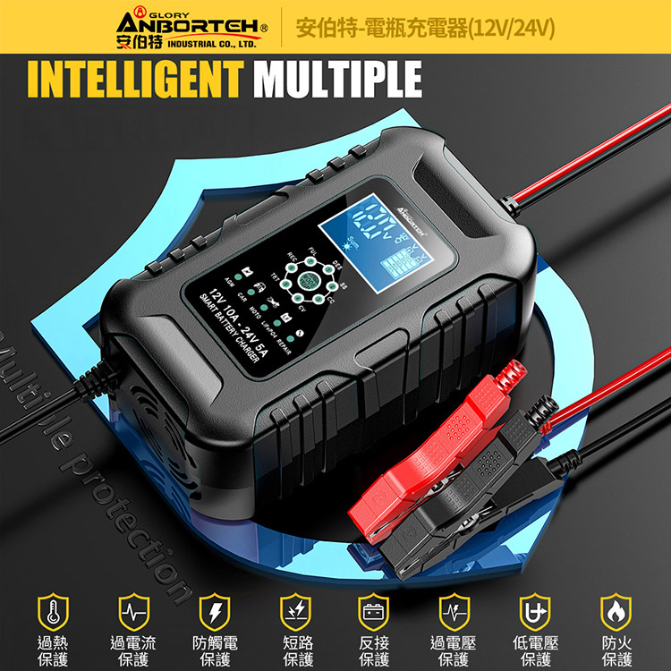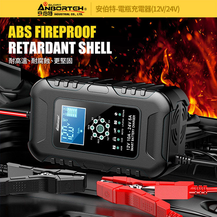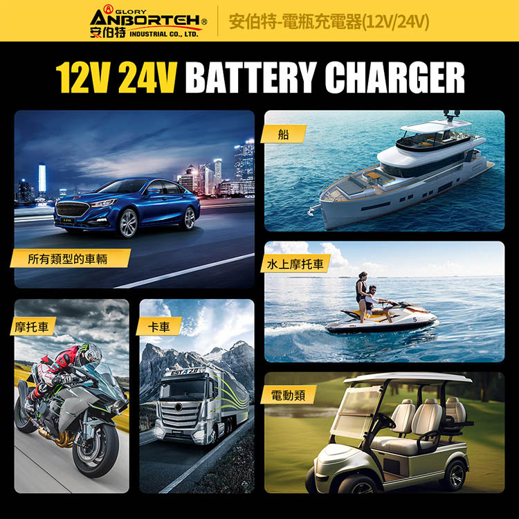 【安伯特】電瓶充電器(12V/24V)黑色款(一年保固)