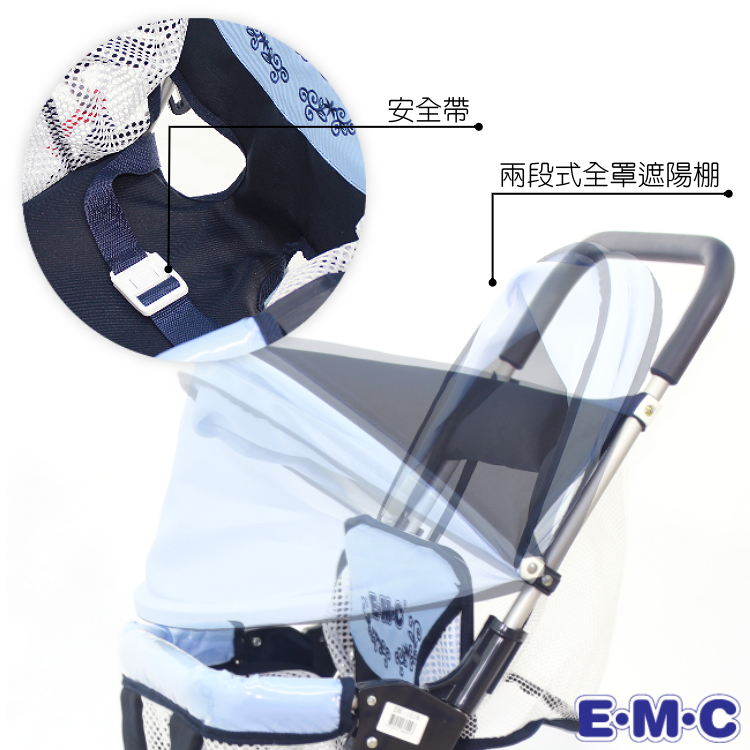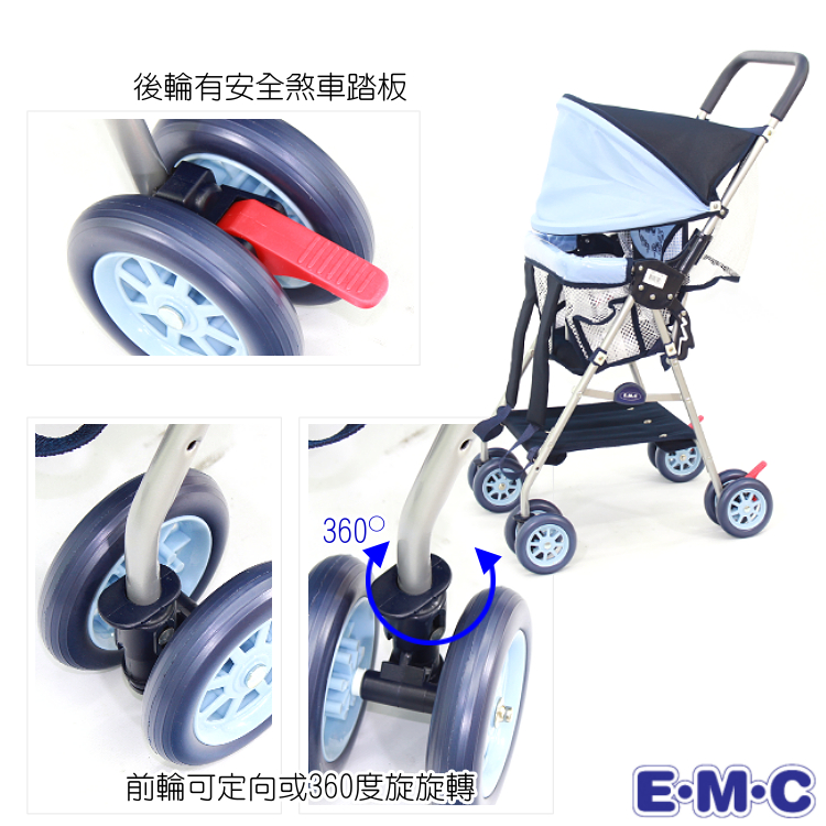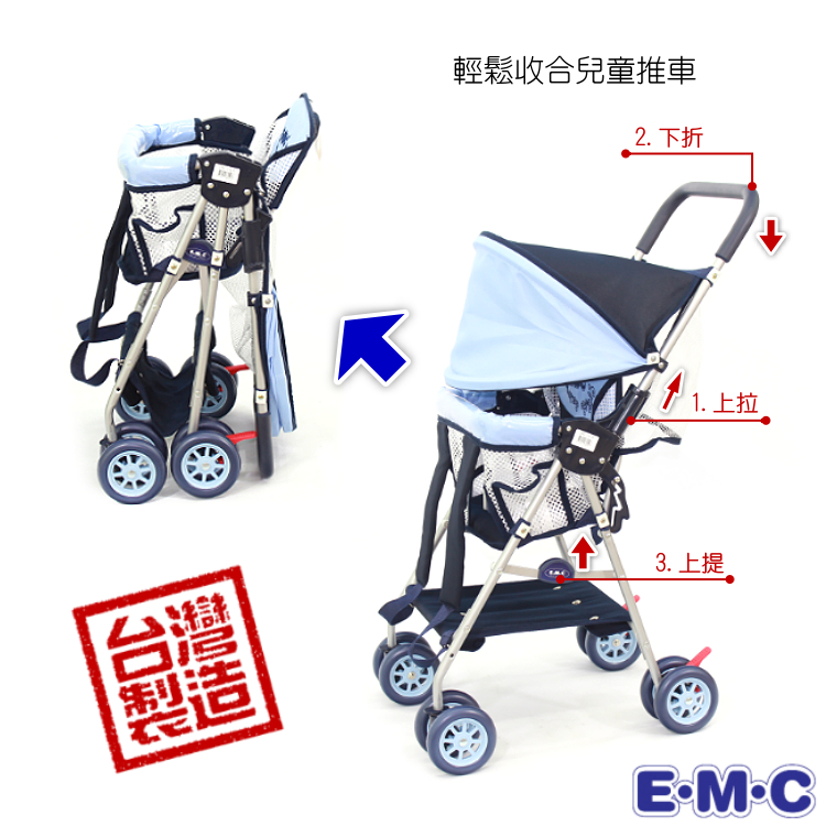 - 展開時雙邊有加附卡榫,避免車體收納慣性而夾傷寶寶。