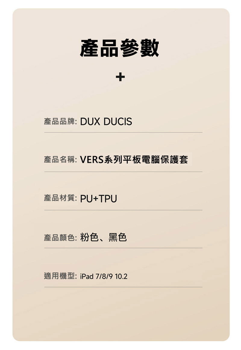 DUX DUCIS Apple 蘋果 iPad 10.2 (7/8/9) VERS 筆槽防摔皮套(粉色)