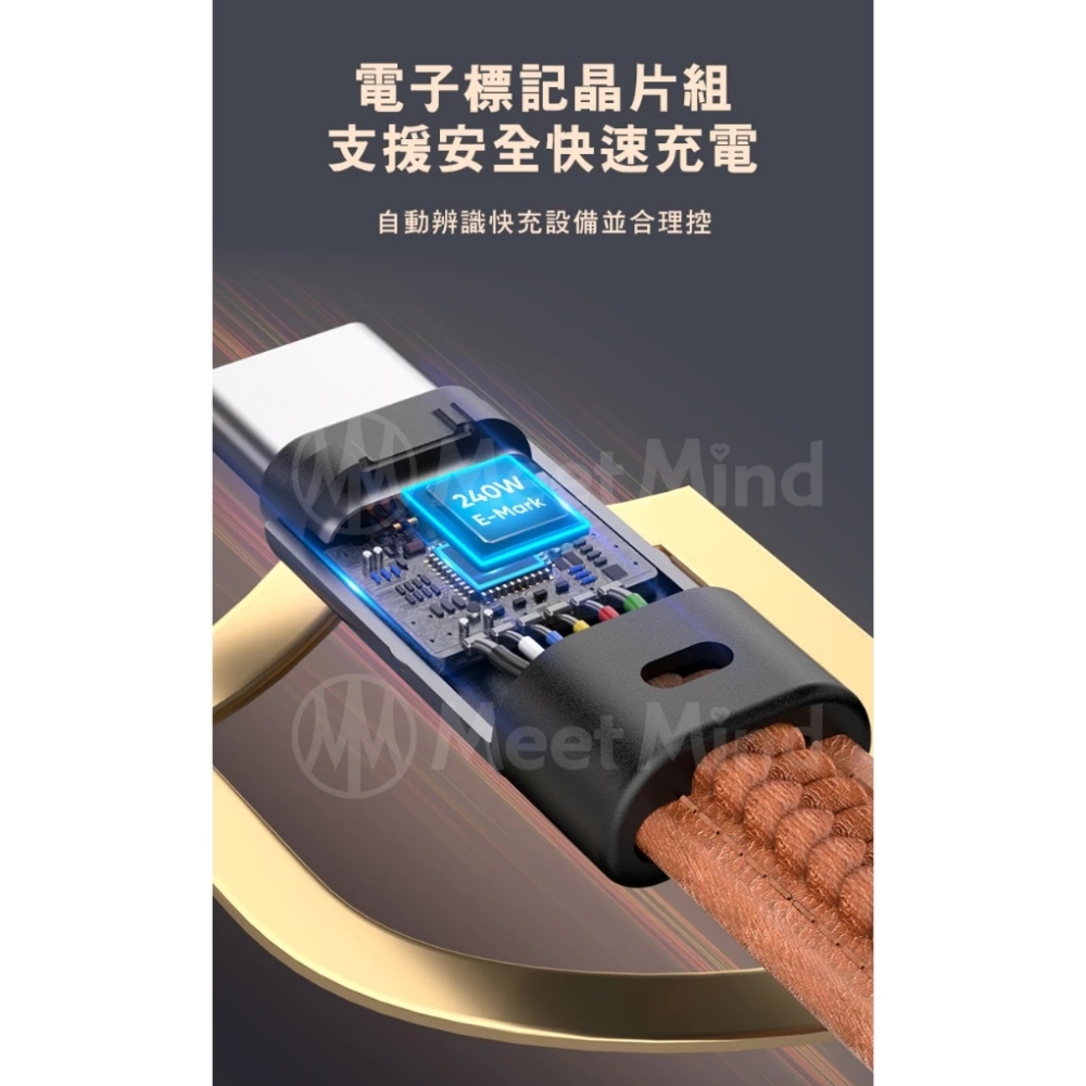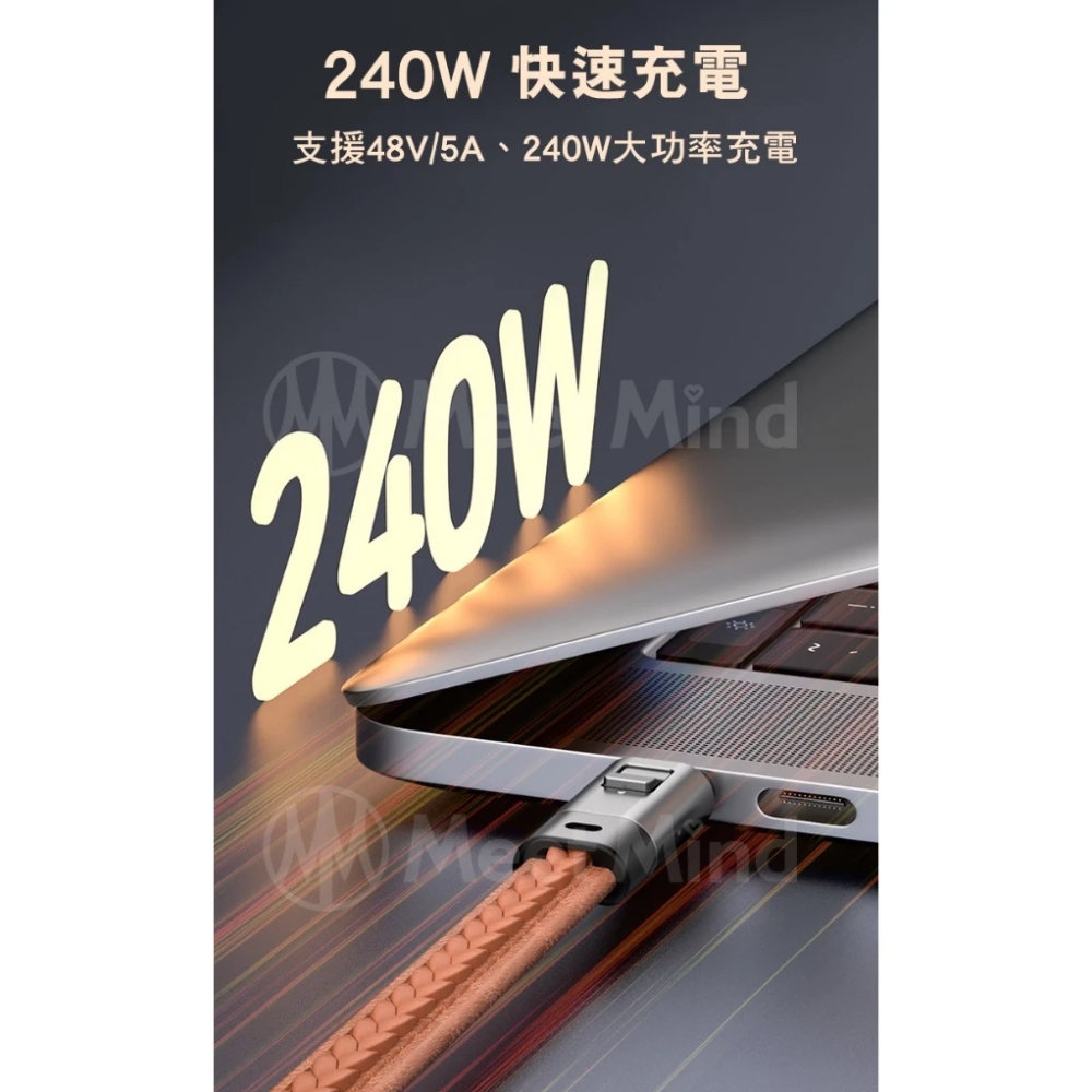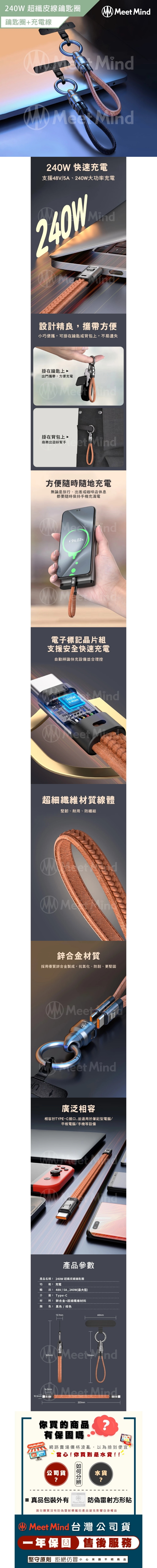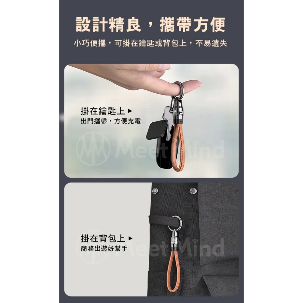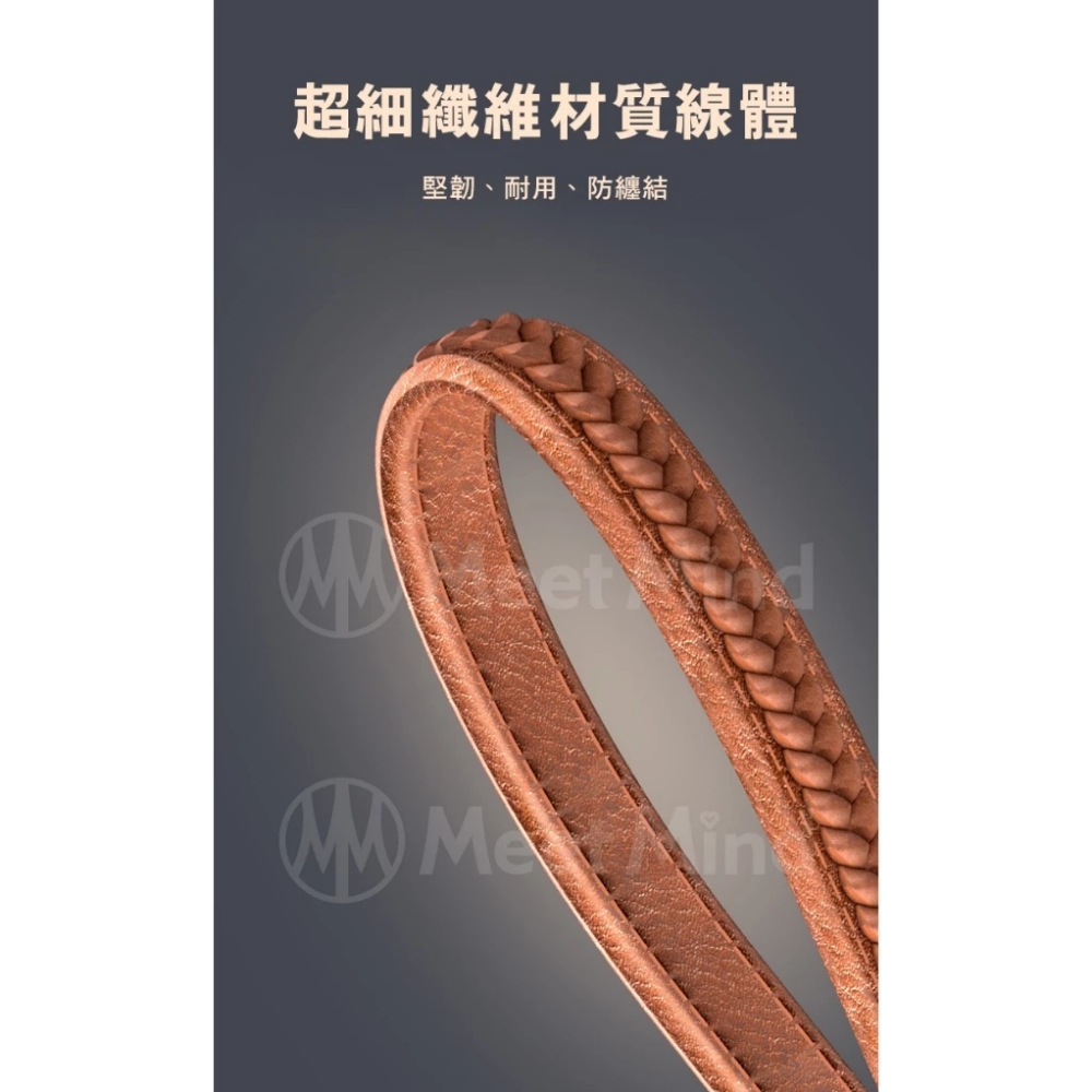 Meet Mind 皮紋鋅合金鑰匙扣充電線-PD240w/22cm 棕色