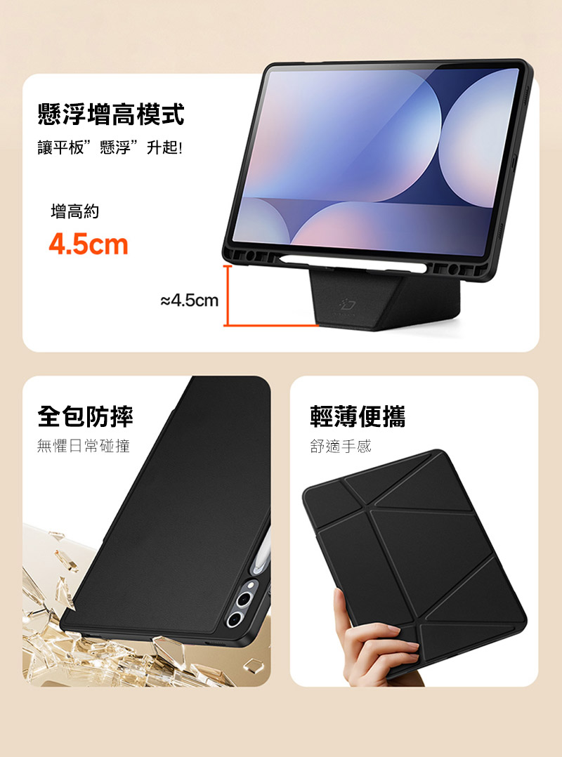 DUX DUCIS SAMSUNG 三星 Tab S10+ / Tab S9+ / Tab S9 FE+ VERS 筆槽防摔皮套(黑色)
