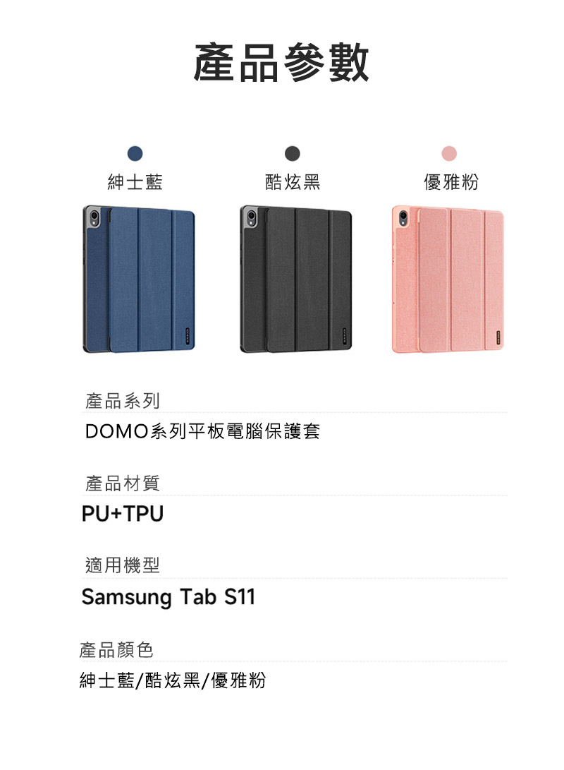 DUX DUCIS SAMSUNG 三星 Galaxy Tab S11 DOMO 筆槽防摔皮套(黑色)