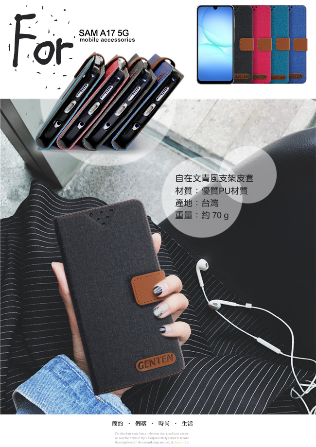 GENTEN Samsung Galaxy A17 5G 自在文青風支架皮套-桃