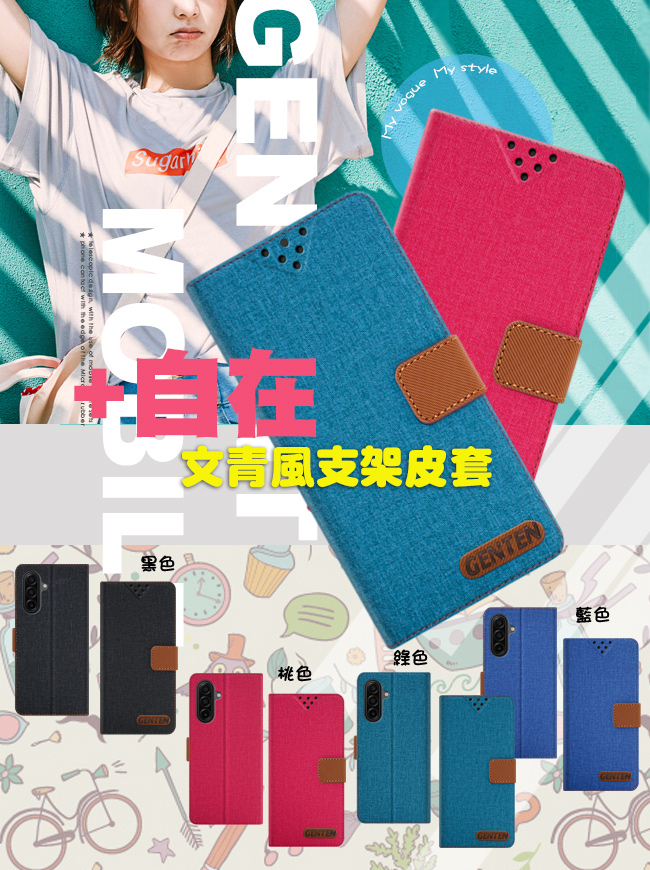 GENTEN Samsung Galaxy A17 5G 自在文青風支架皮套-綠
