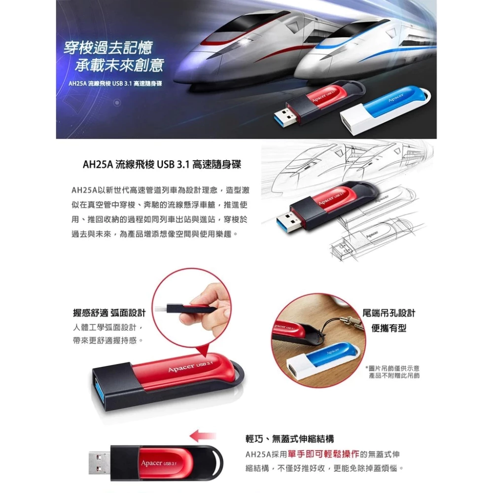 Apacer 宇瞻 AH25A 16GB 流線飛梭碟 USB 3.1 隨身碟