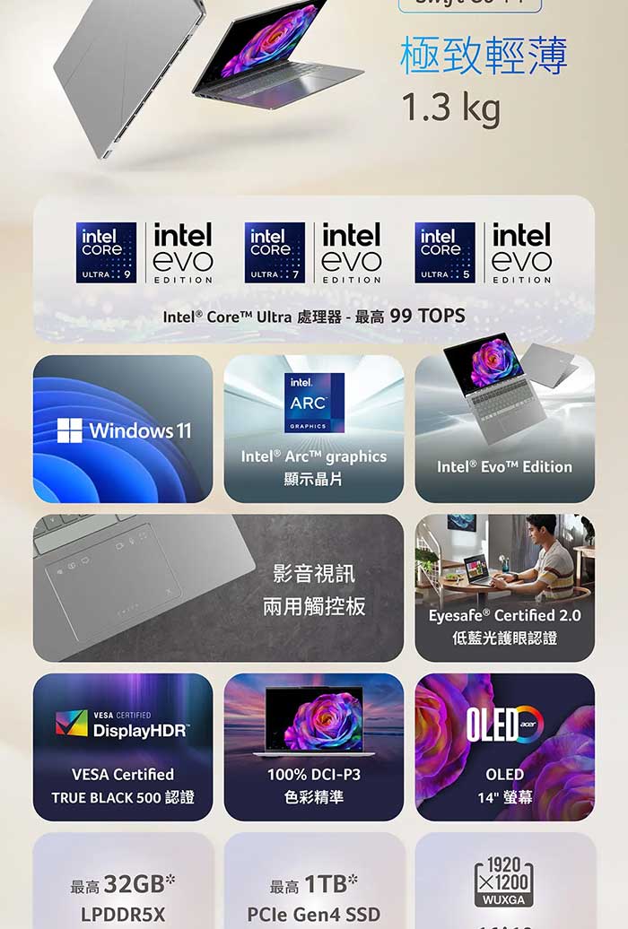 《Acer 宏碁》 SFG14-74-79P0 (14吋WUXGA/Ultra 7 255H/32G/1TB SSD/Win11/兩年保)