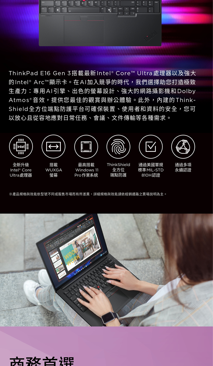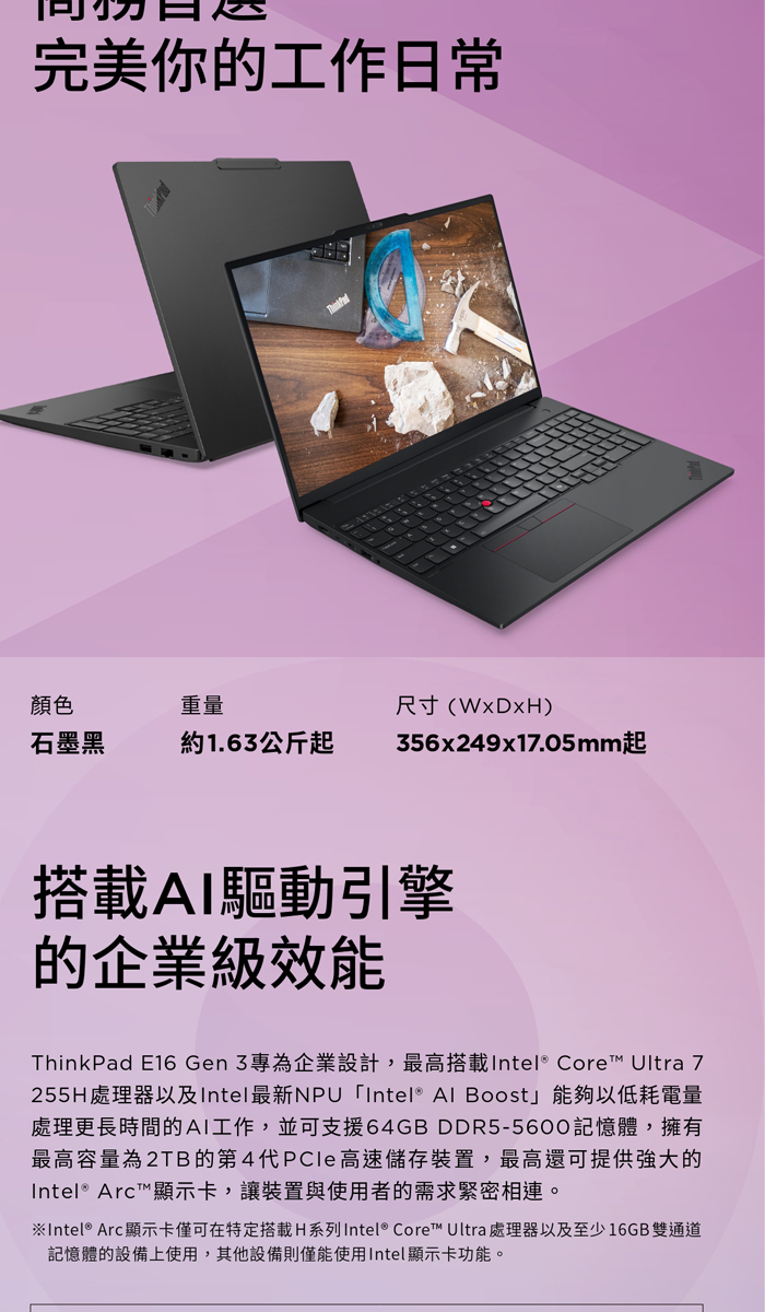 《Lenovo 聯想》ThinkPad E16 Gen 3(16吋WUXGA/Ultra 5 225H/16G/1TB SSD/Win11Pro/三年保)