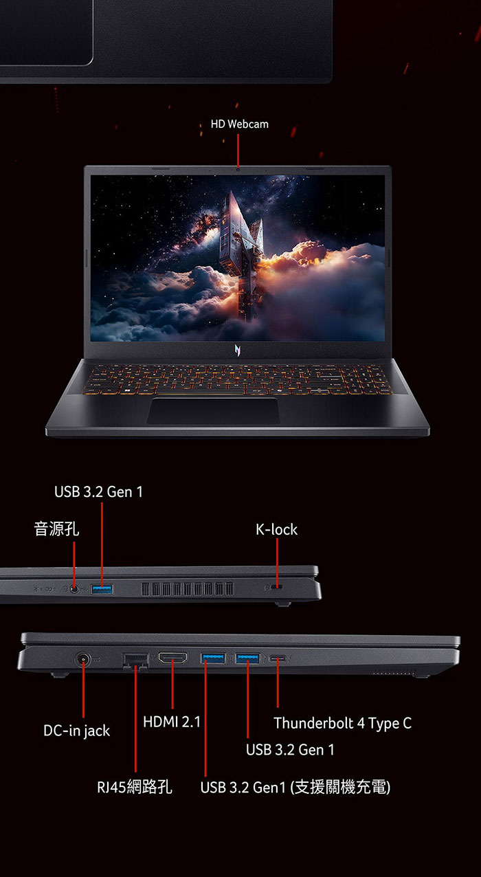 《Acer 宏碁》 ANV15-52-598T (15.6吋FHD/i5-13420H/16G+16G/512G SSD/RTX4050/Win11/特仕版)