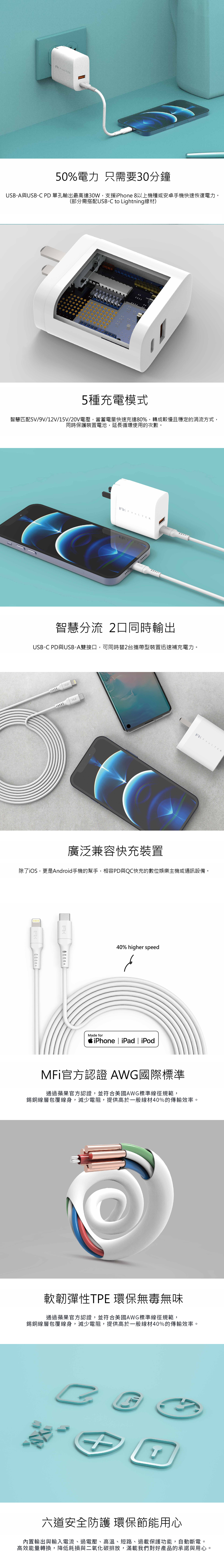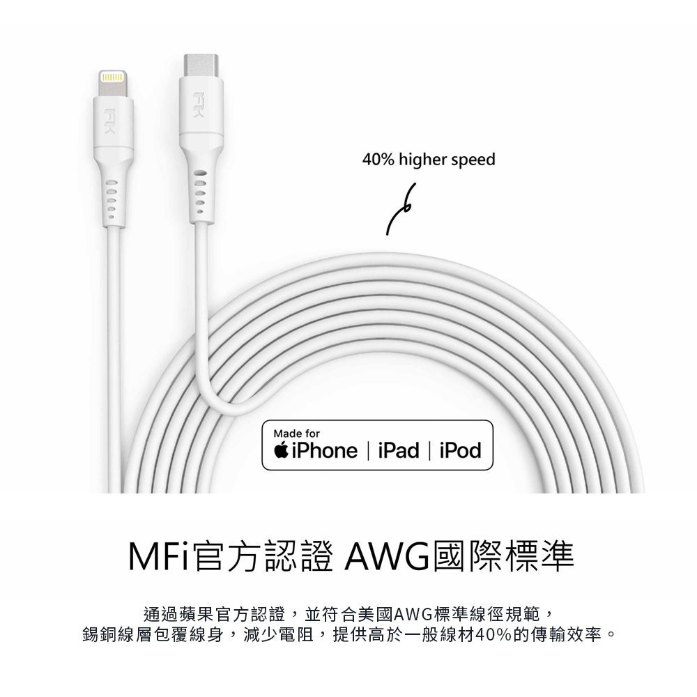 【Feeltek】FTK 30W 雙孔PD快充組(內附MFI認證 C to L 1.2M充電線)