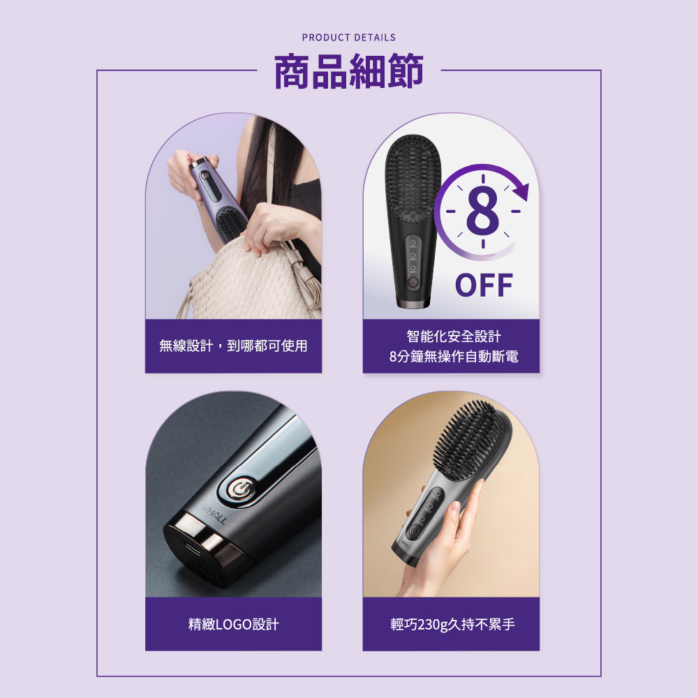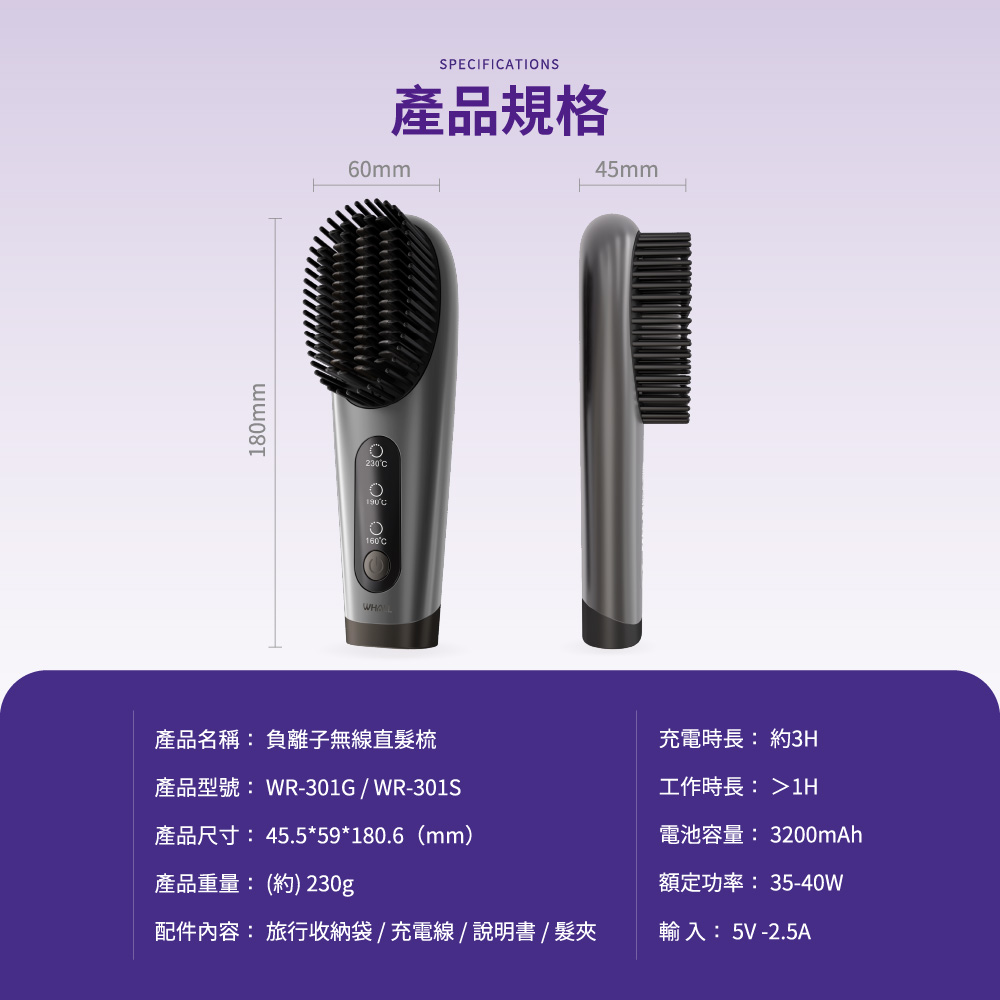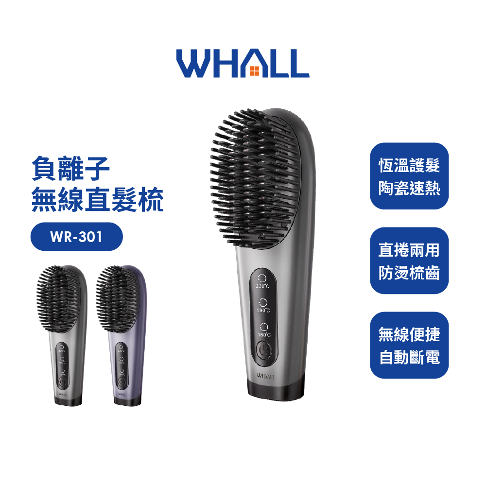 WHALL 負離子無線直髮梳-靜謐灰WR-301G