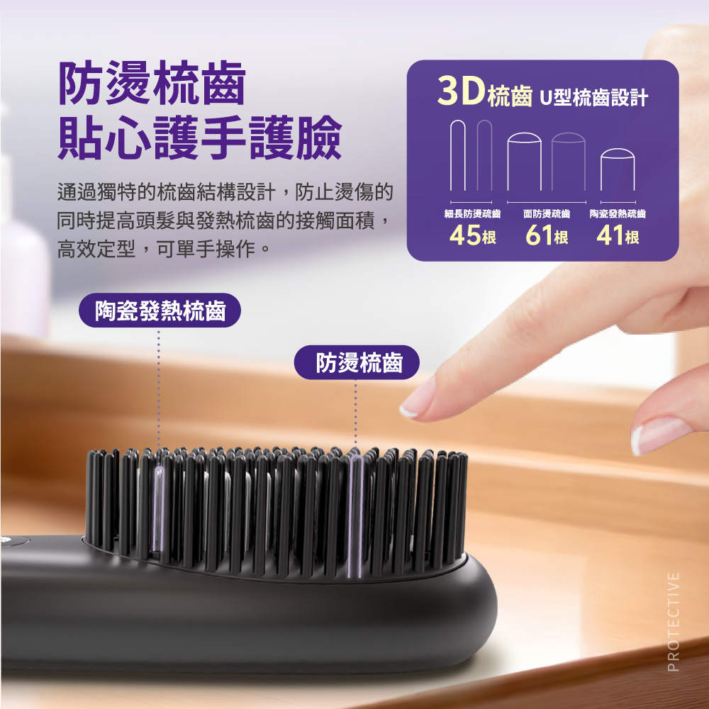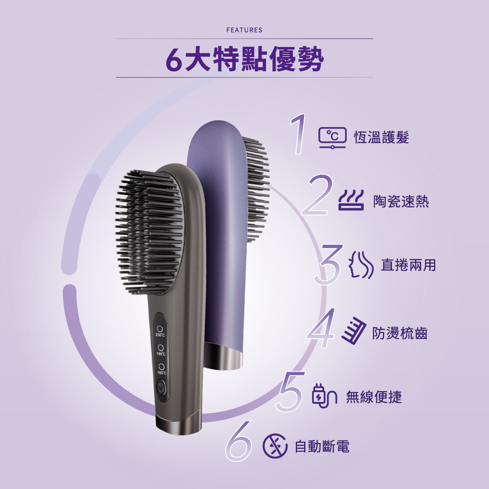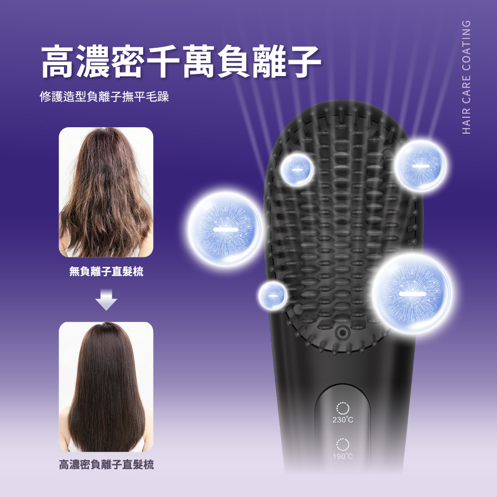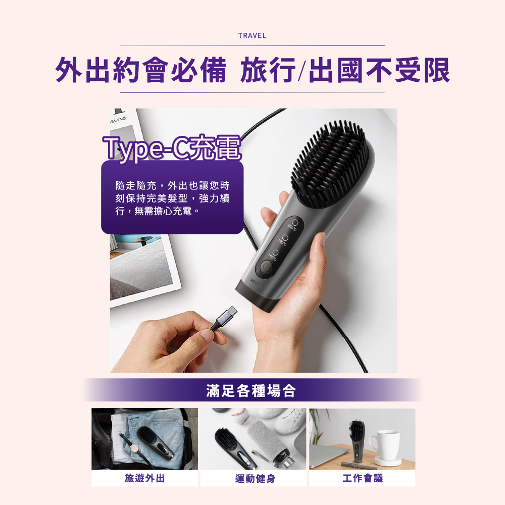 WHALL 負離子無線直髮梳-靜謐灰WR-301G