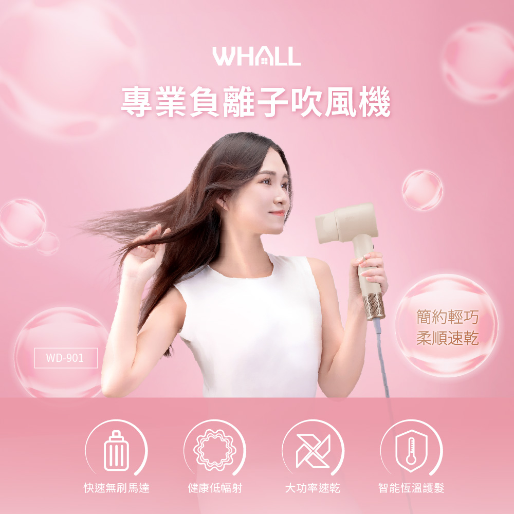 WHALL 專業負離子吹風機-炫光粉WD-901P