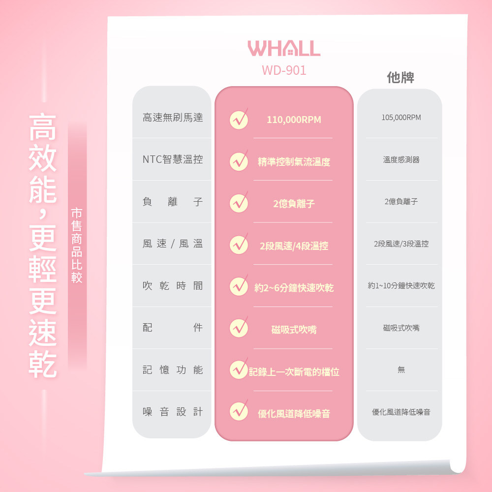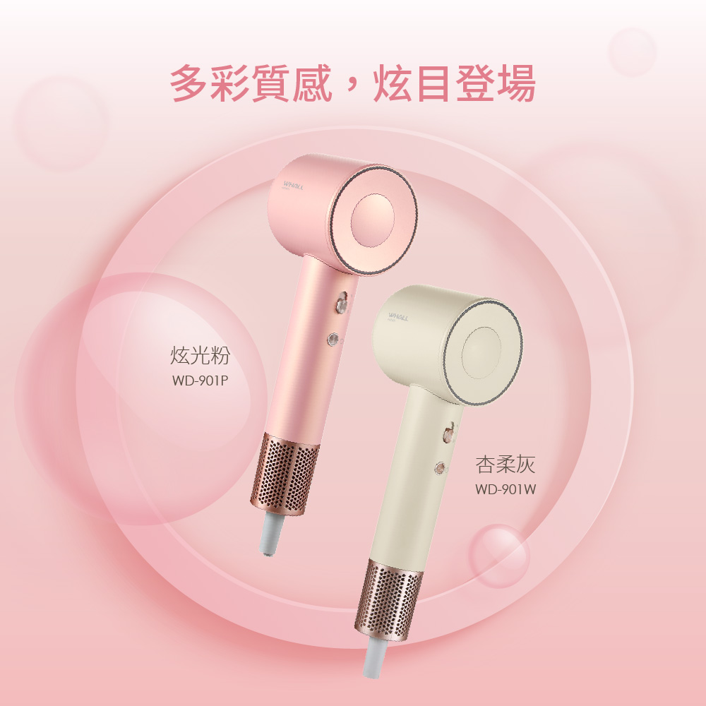 WHALL 專業負離子吹風機-杏柔灰WD-901W
