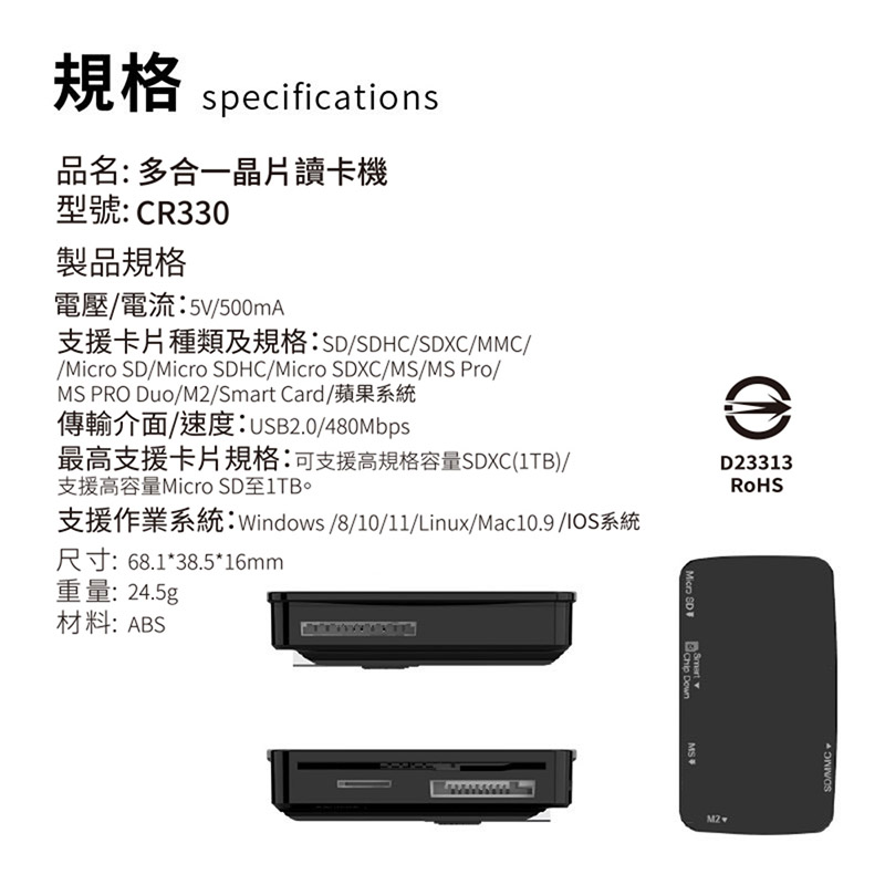◎ 記憶卡支援,相容SD、Micro SD、SD/M