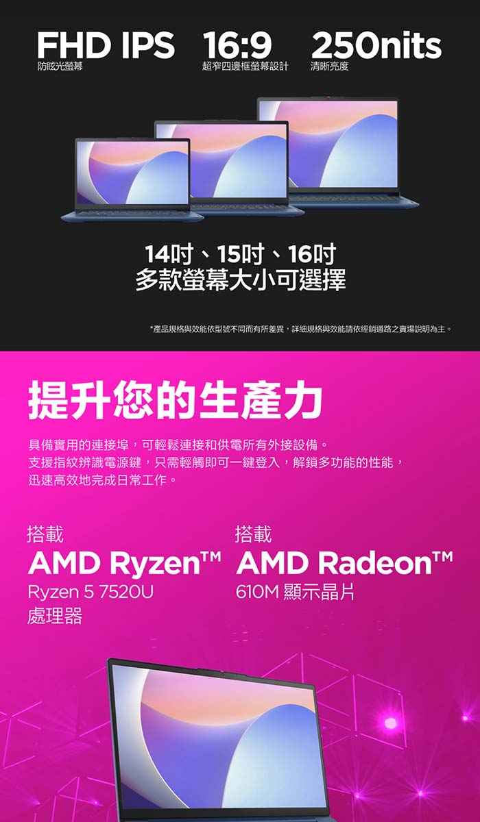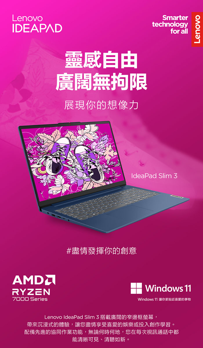 《Lenovo 聯想》IdeaPad Slim 3 82XQ00TFTW(15.6吋FHD/Ryzen 5 7520U/16G/1TB SSD/特仕版)