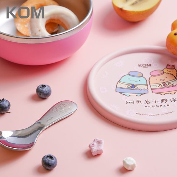 【DOZO嚴選】 KOM-角落小夥伴 316不鏽鋼 矽膠兒童隔熱碗 黃色/藍色/粉色 3入一組 (附角落小夥伴圓匙) 加贈: 隨機款便當袋