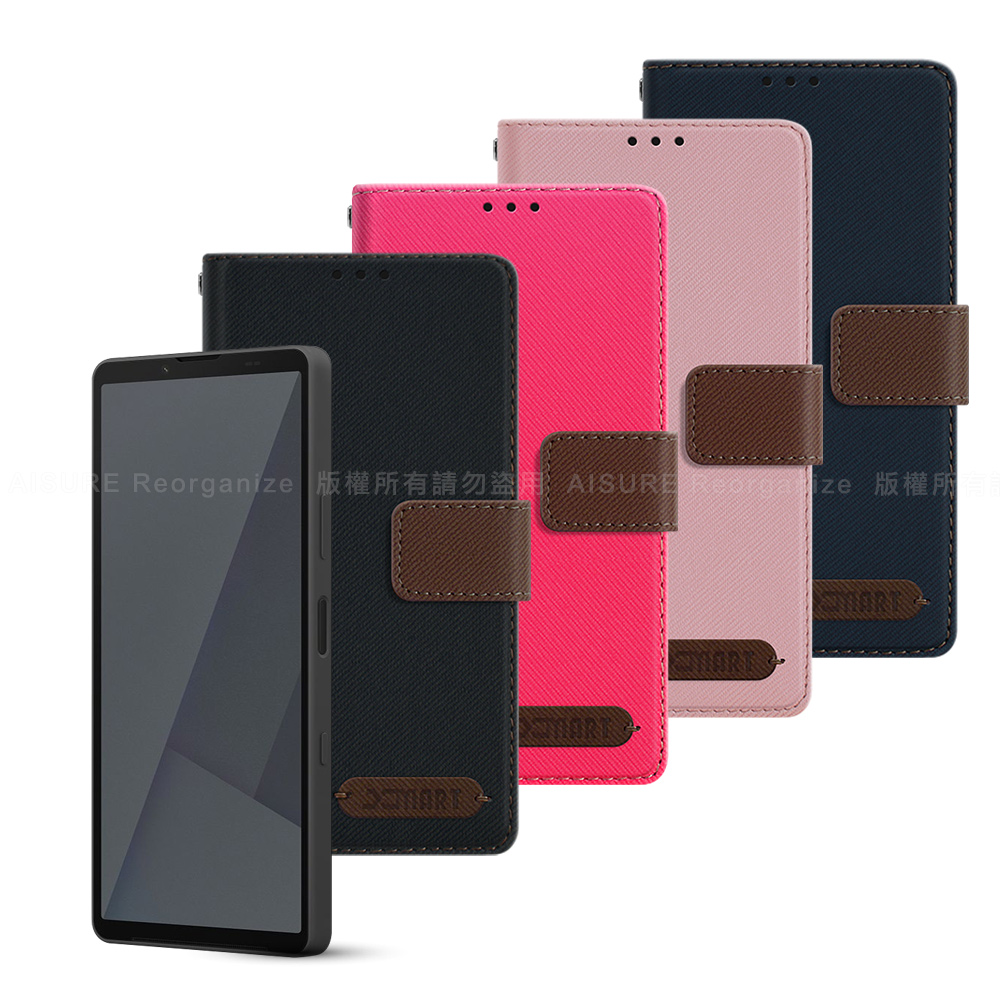 Xmart SONY Xperia 10 VII 度假浪漫風斜紋側掀皮套-桃