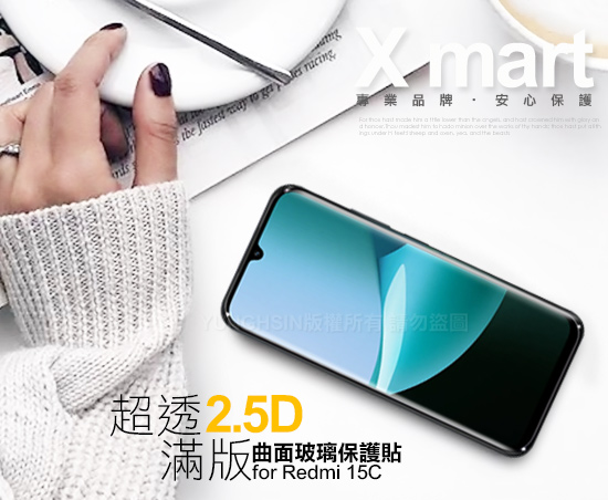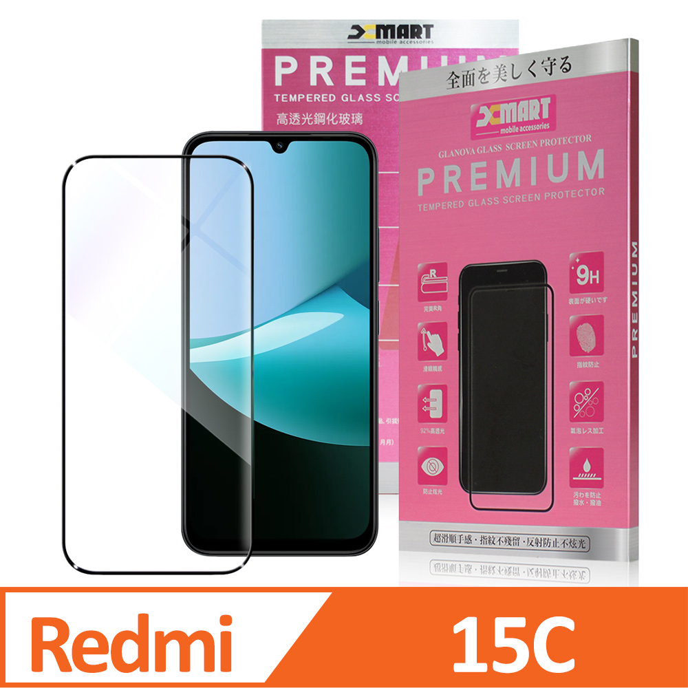 Xmart 紅米15C 5G 超透滿版 2.5D 鋼化玻璃貼-黑