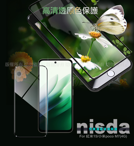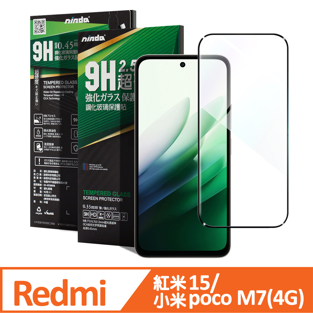 NISDA 紅米15 / 小米poco M7(4G) 完美滿版玻璃保護貼-黑