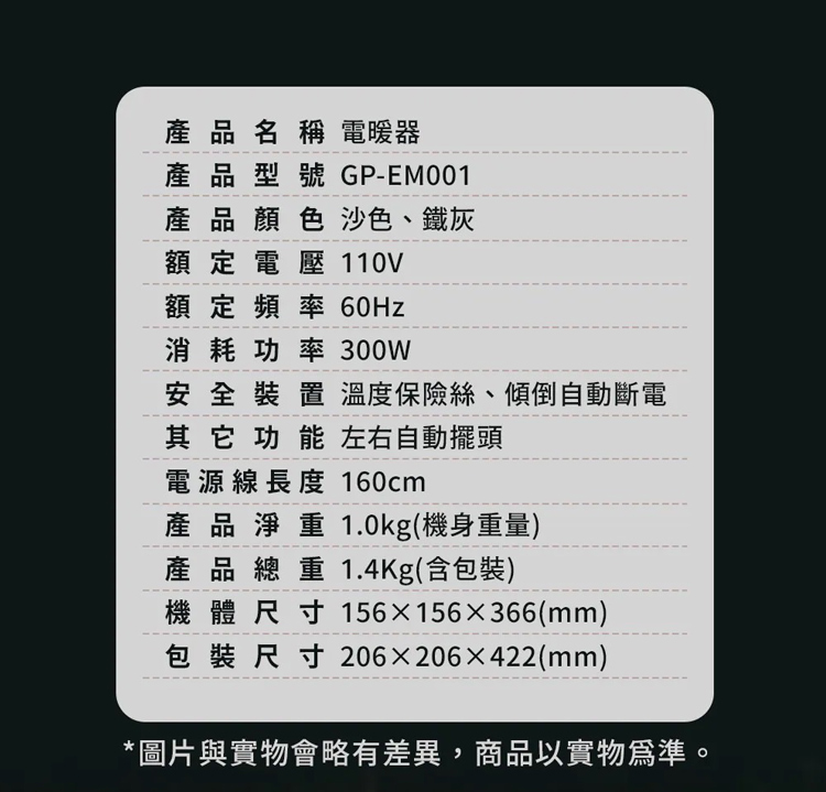 G-Plus GP-EM001 直立式電暖器/電暖爐 +送原廠收納袋-灰