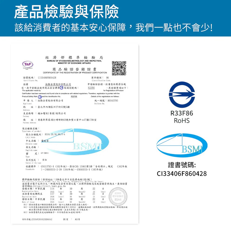 • BSMI 字號:R33F86