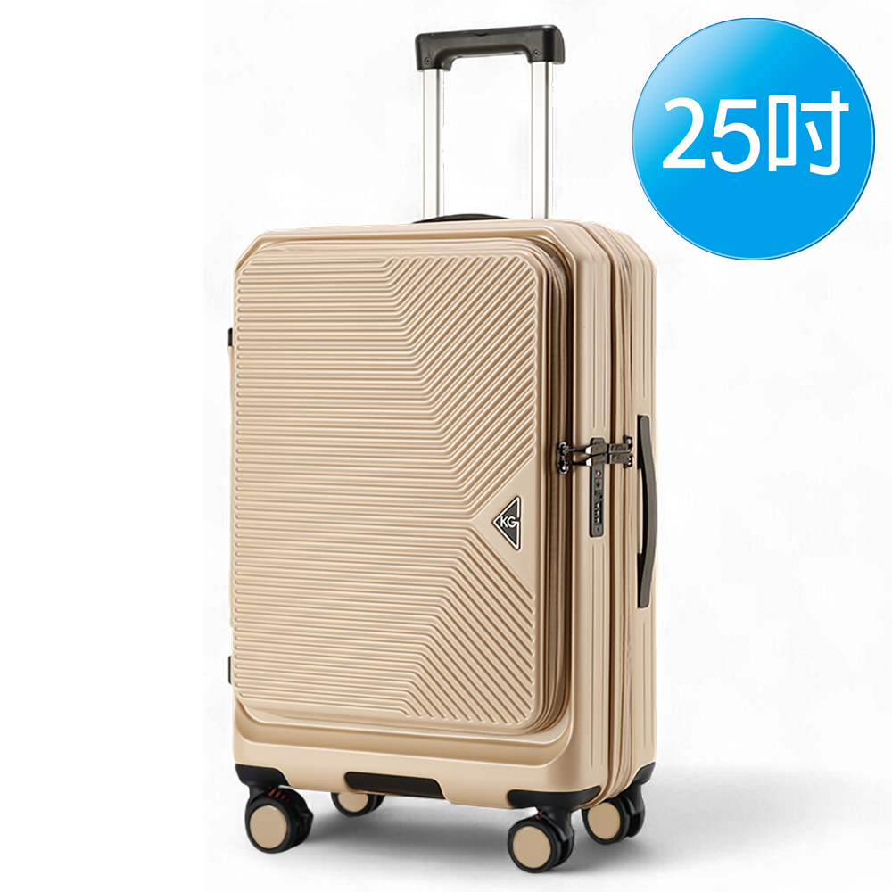 【KeepGoing】光耀之心 雙開式 25吋 多功能防爆防刮行李箱-奶茶色