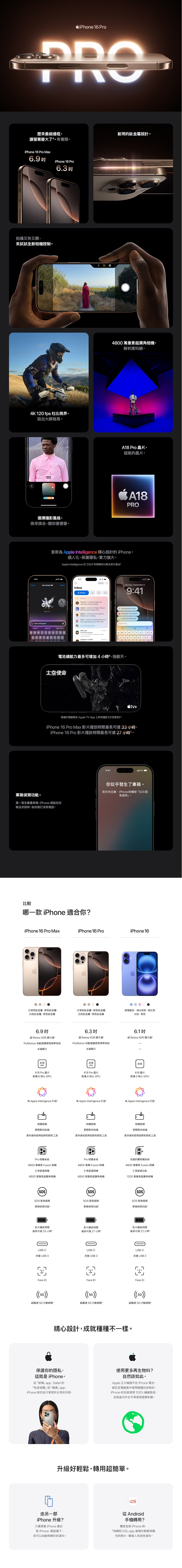 ★A18 Pro 晶片,6 核心 GPU,超凡的速度和絕佳的繪圖處理表現。