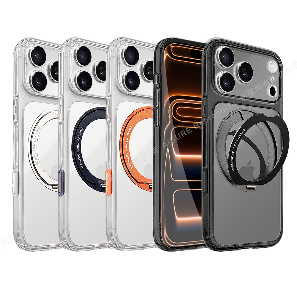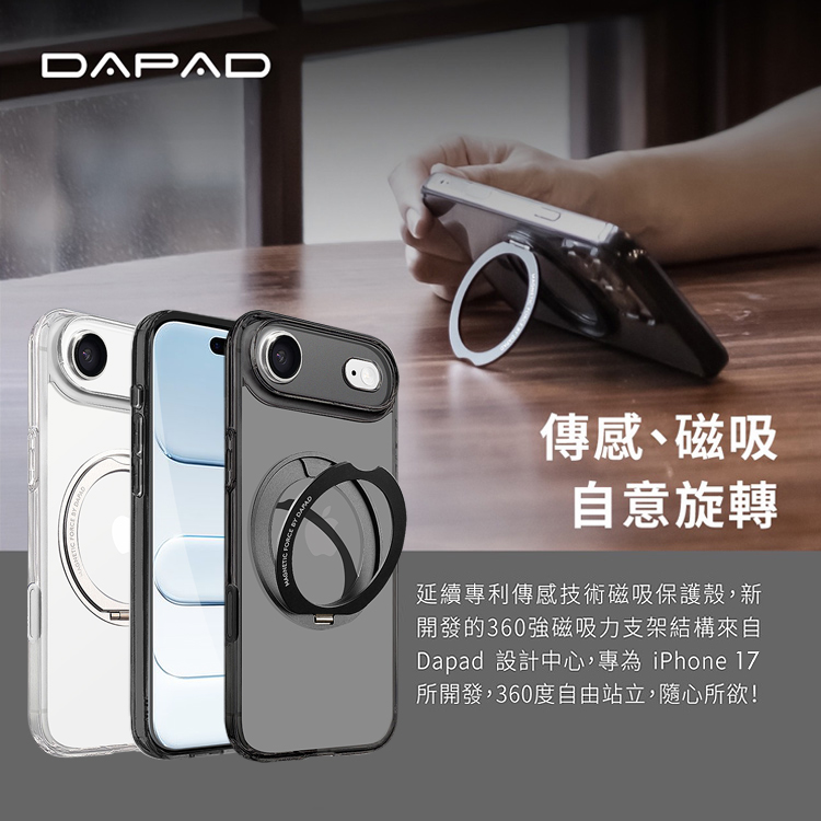 DAPAD iPhone 17 Pro Max 6.9 專利傳感技術磁吸360度支架保護殼-附相機電子按鍵-黑透
