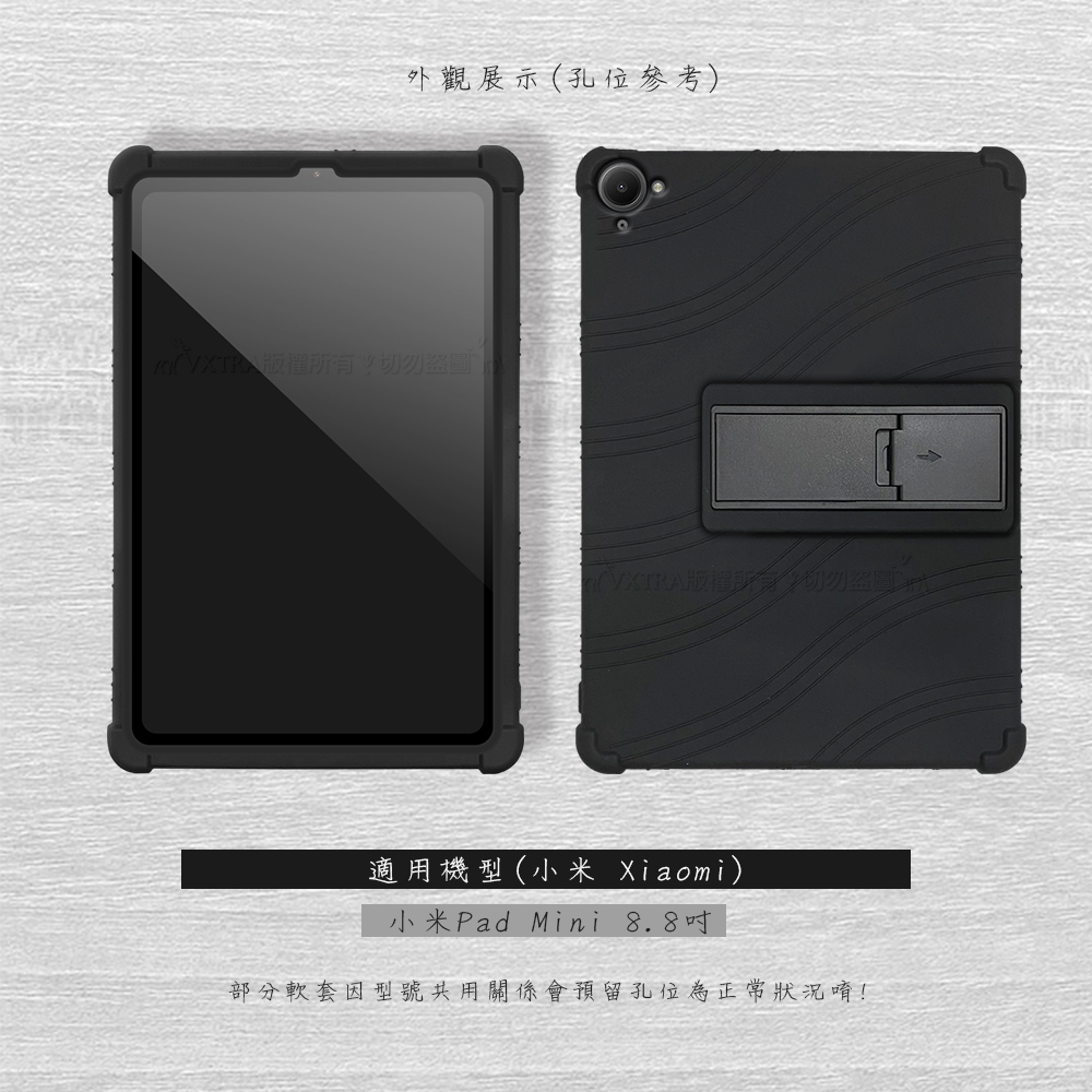 VXTRA 小米平板 Pad Mini 8.8吋 全包覆矽膠防摔支架軟套 保護套(黑)