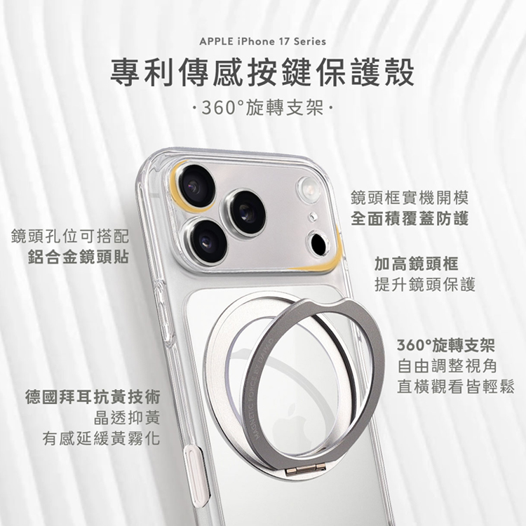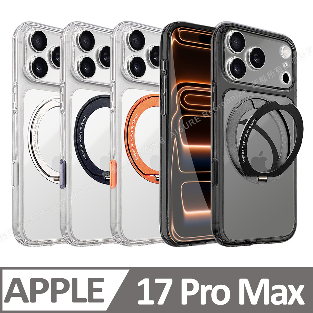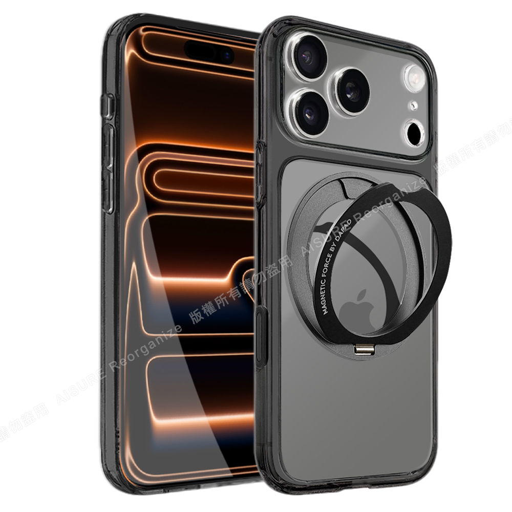 DAPAD iPhone 17 Pro Max 6.9 專利傳感技術磁吸360度支架保護殼-附相機電子按鍵-黑