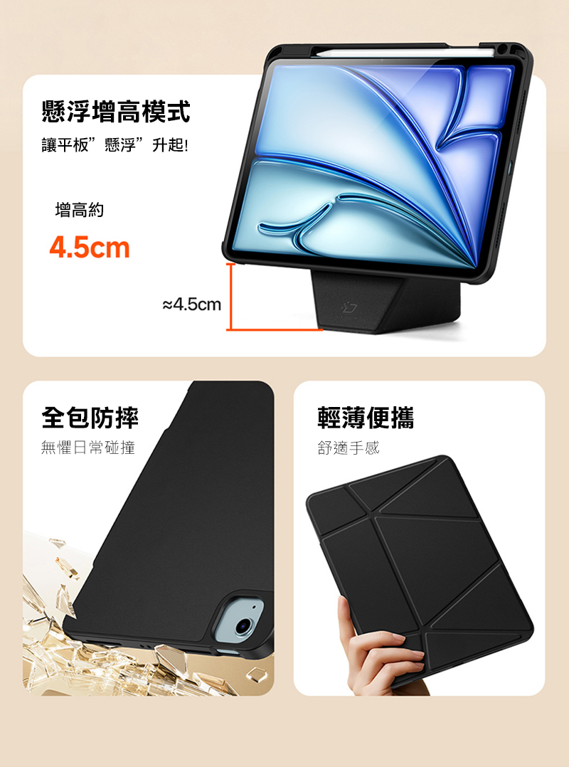 .多角度折疊方式,可懸浮增高,舒適辦公不低頭