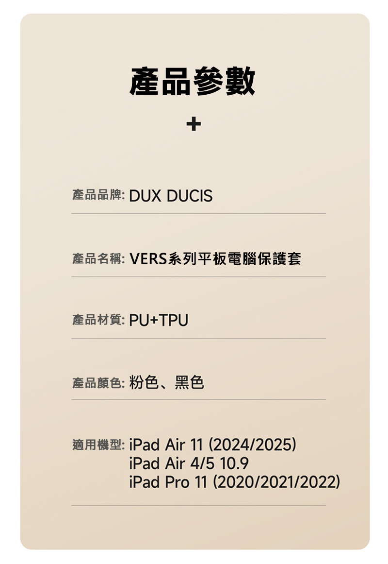 DUX DUCIS Apple iPad Air 11 M2/M3/Air4/Air5 /iPad Pro 11 2018~2022 VERS 筆槽防摔(粉色)