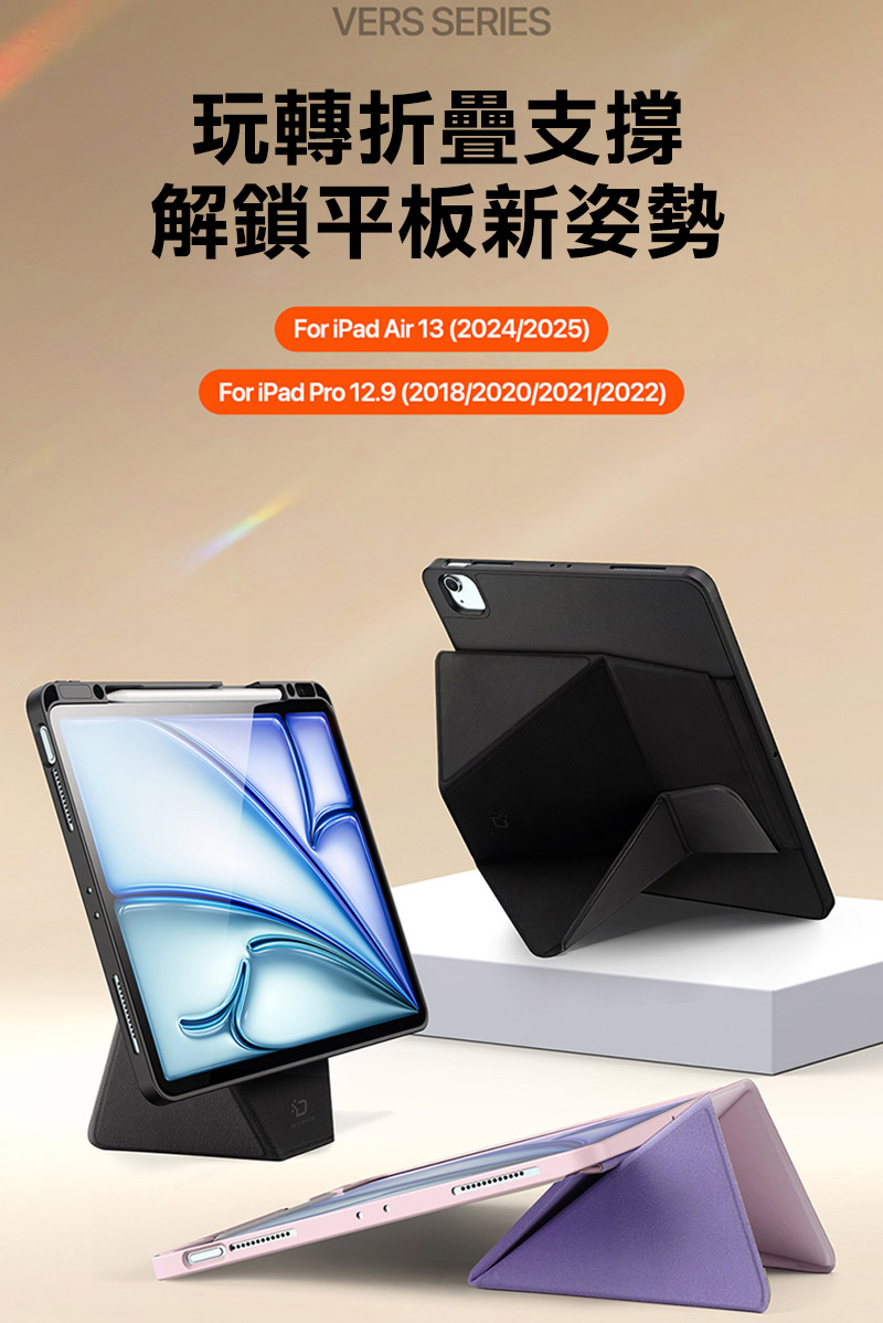 DUX DUCIS Apple 蘋果 iPad Air 13 / iPad Pro 12.9 (2018~2022) VERS 筆槽防摔皮套(粉色)
